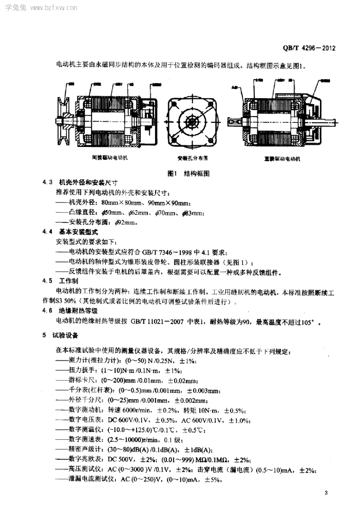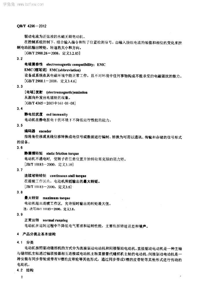 QB/T 4296-2012 工业用缝纫机永磁交流伺服电动机技术条件