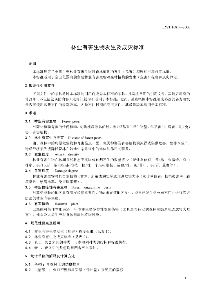 LY/T 1681-2006 林业有害生物发生及成灾标准