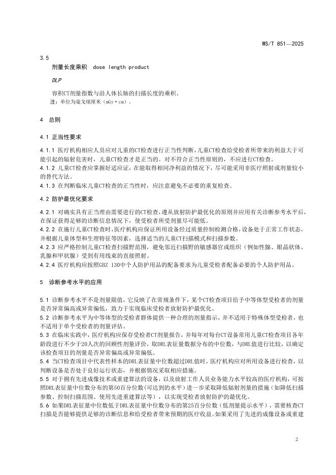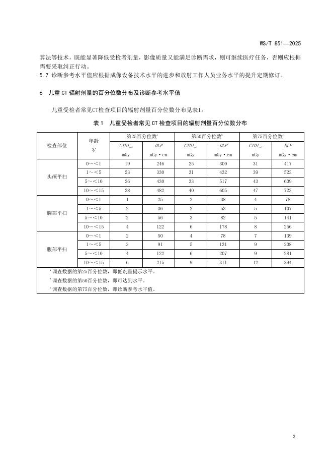 WS/T 851-2025 X射线计算机体层成像儿童诊断参考水平标准