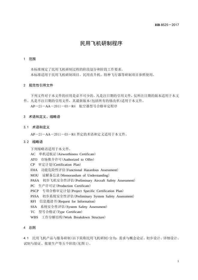 HB 8525-2017 民用飞机研制程序