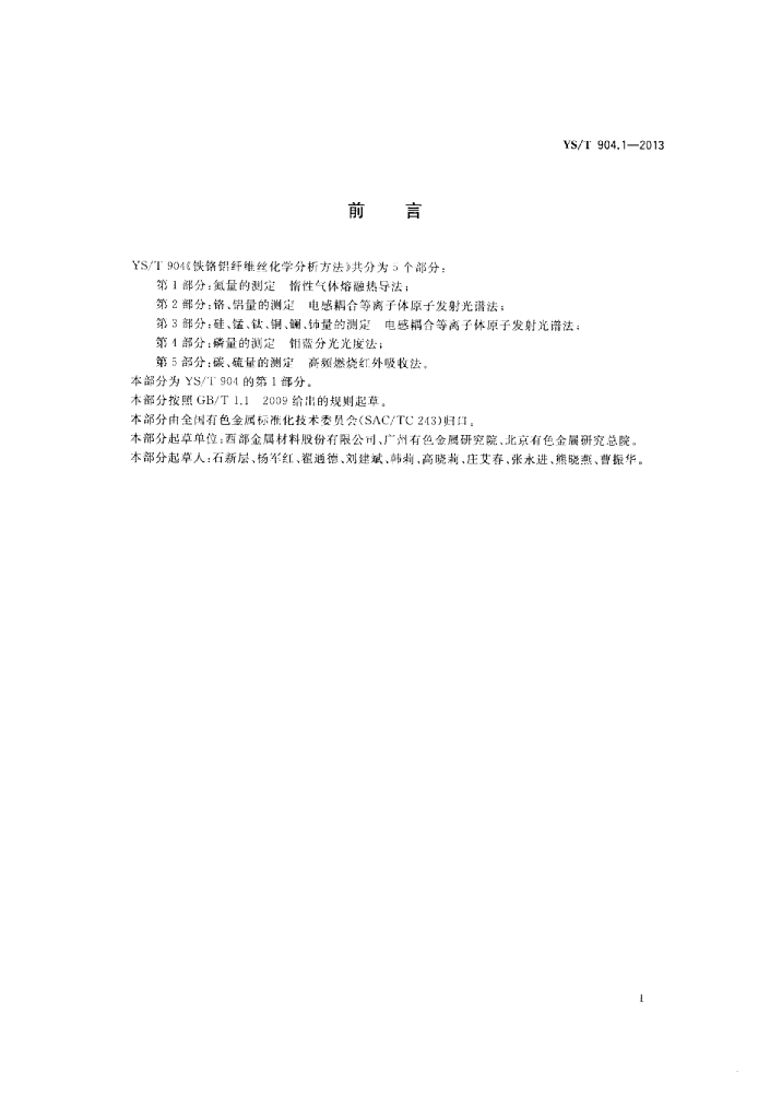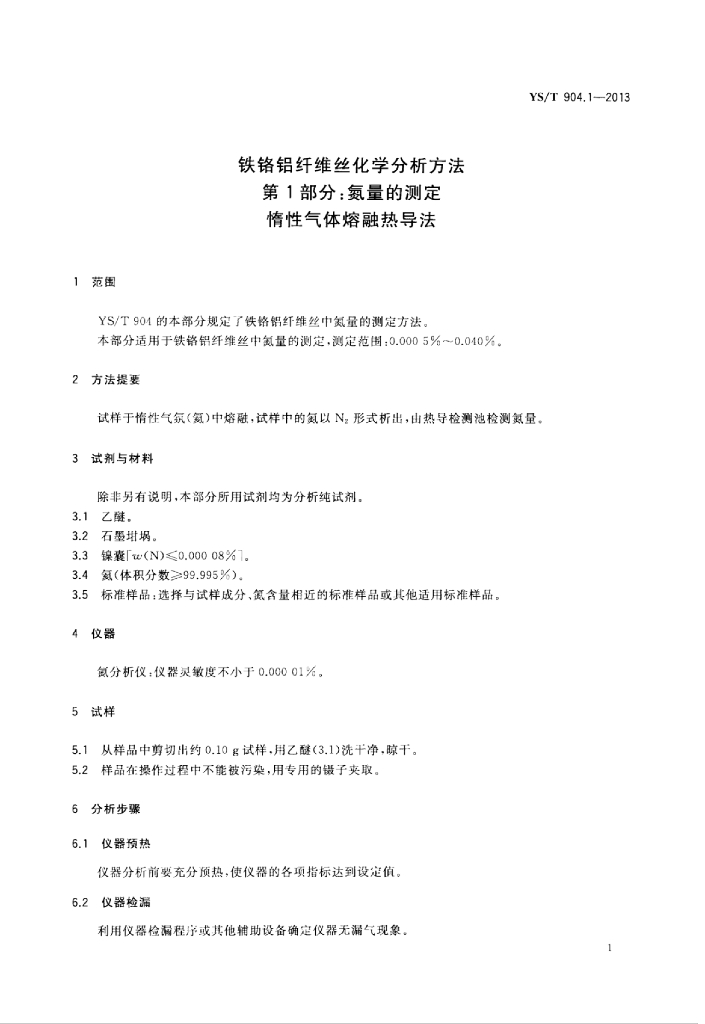 YS/T 904.1-2013 铁铬铝纤维丝化学分析方法 第1部分:氮量的测定惰性气体熔融热导法