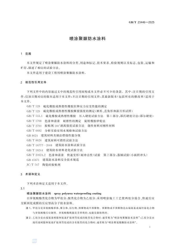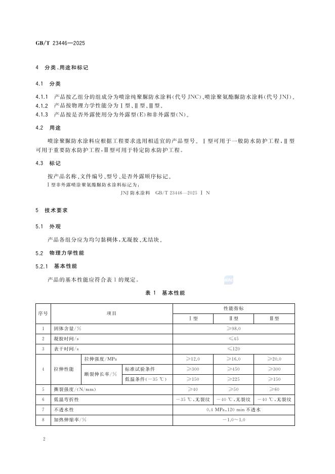 GB/T 23446-2025 喷涂聚脲防水涂料