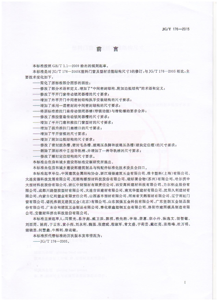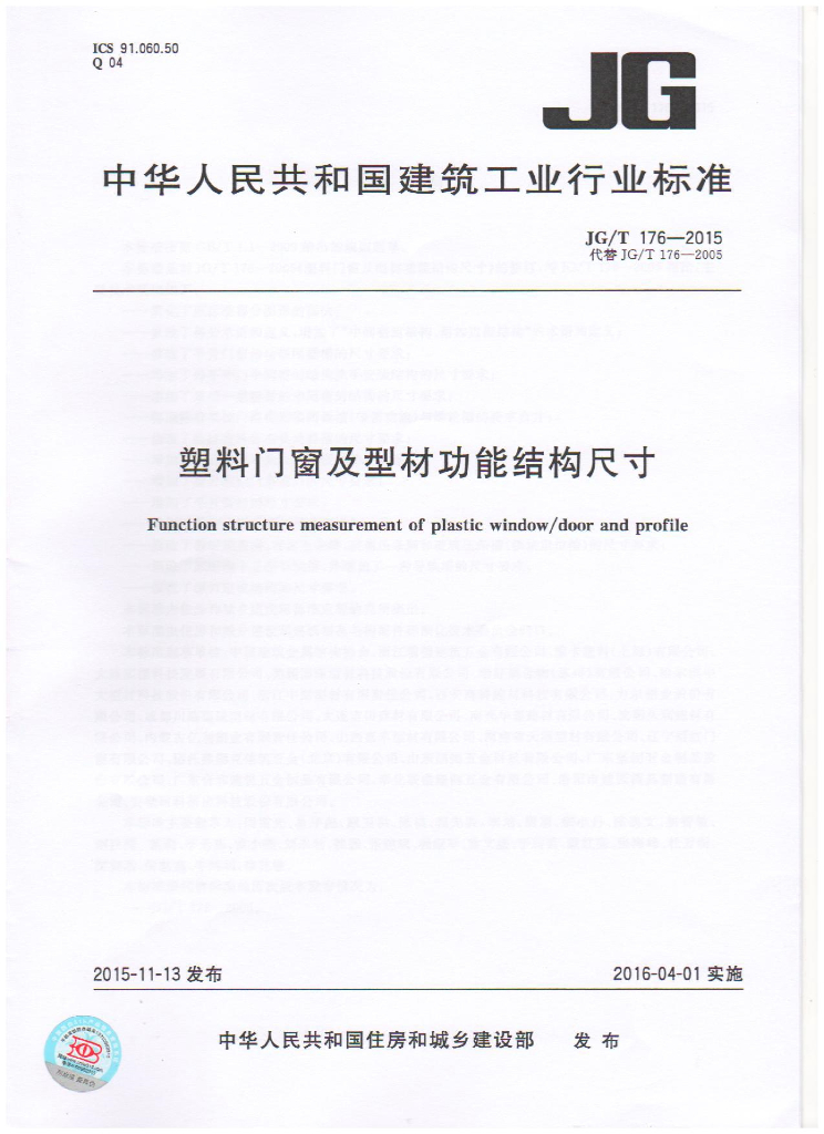 JG/T 176-2015 塑料门窗及型材功能结构尺寸
