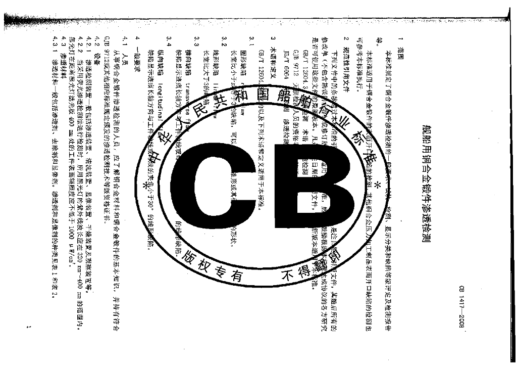 CB 1417-2008 舰船用铜合金锻件渗透检测