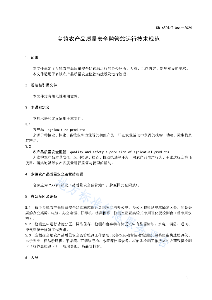 DB6501/T 064-2024 乡镇农产品质量安全监管站运行技术规范