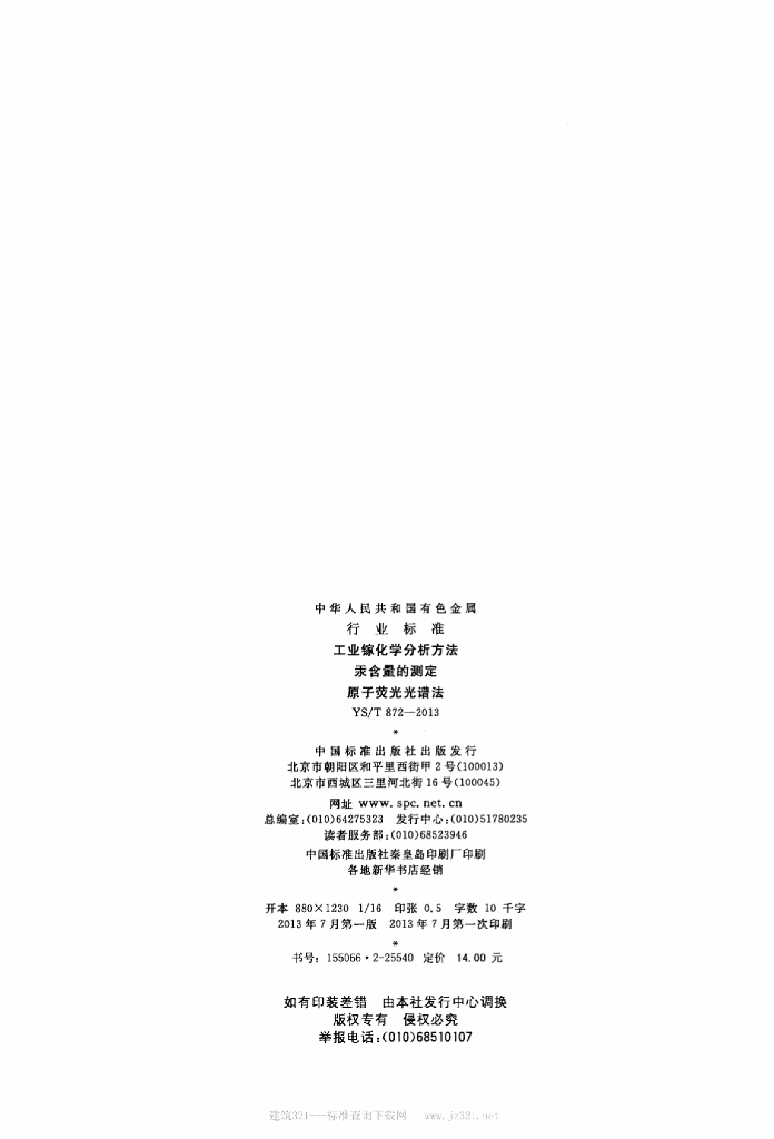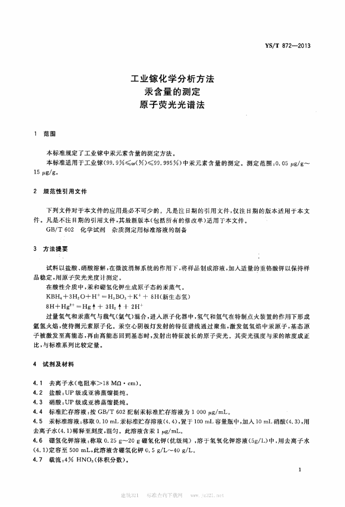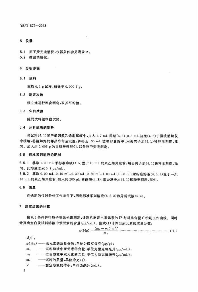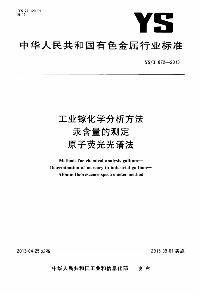 YS/T 872-2013 工业镓化学分析方法 汞含量的测定 原子荧光光谱法