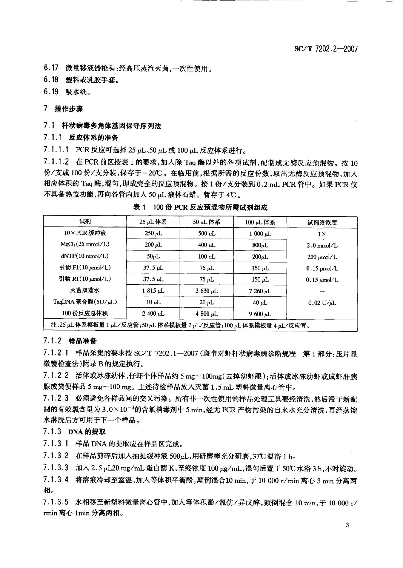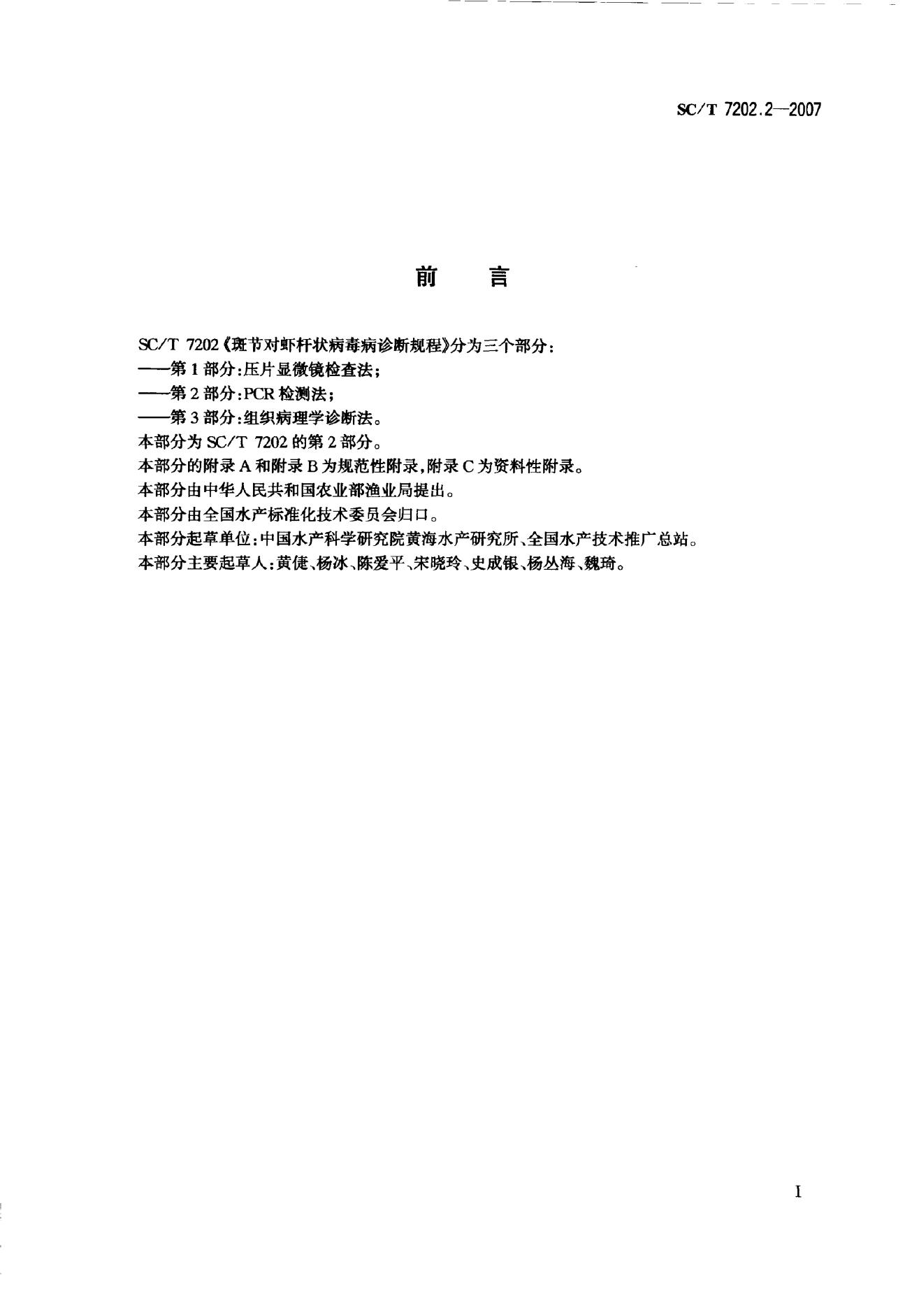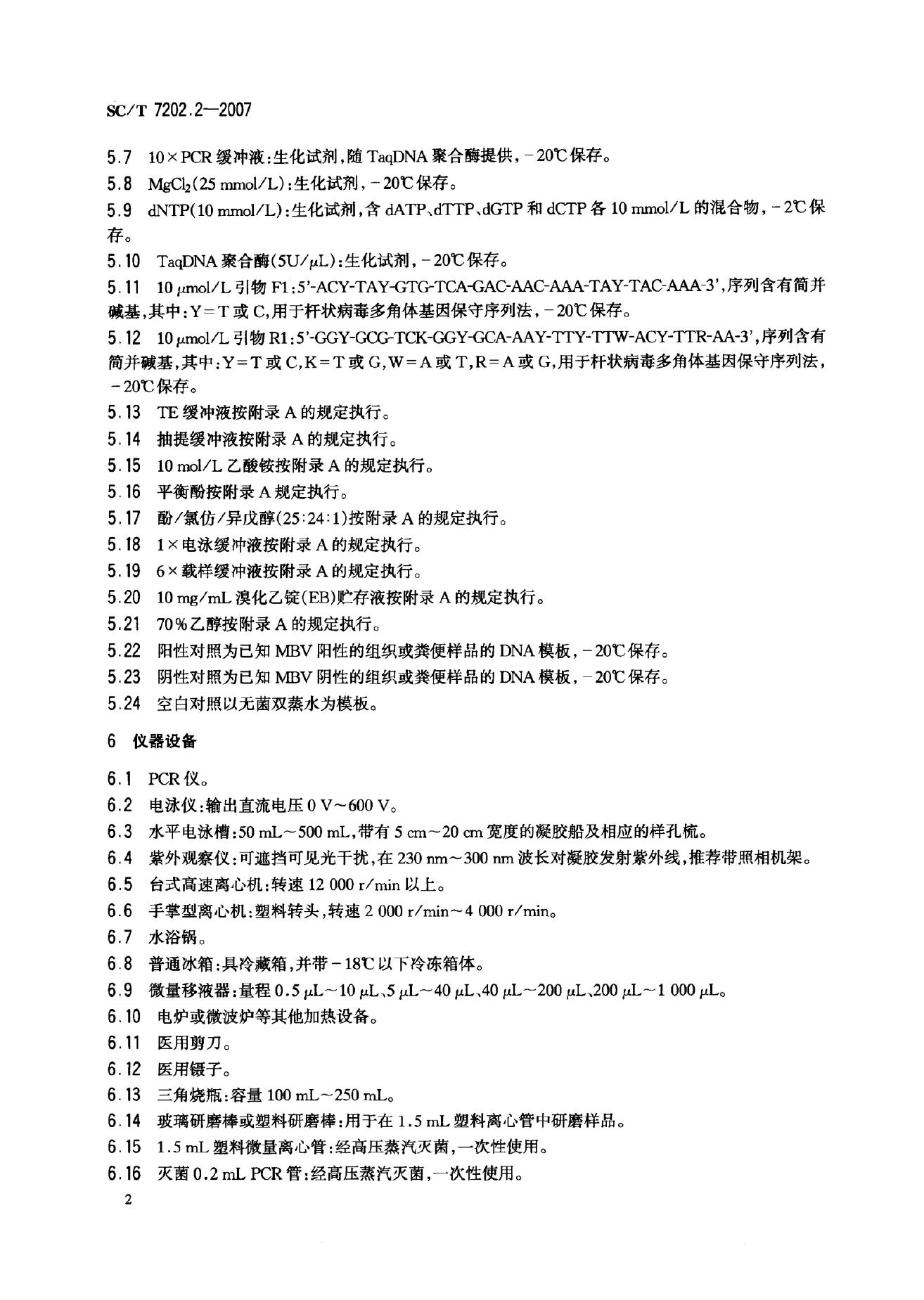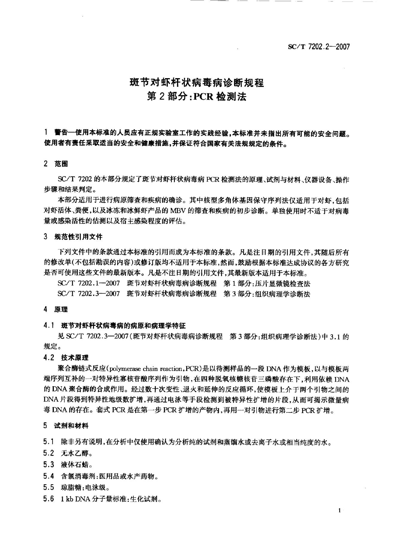 SC/T 7202.2-2007 斑节对虾杆状病毒诊断规程 第2部分:PCR检测法