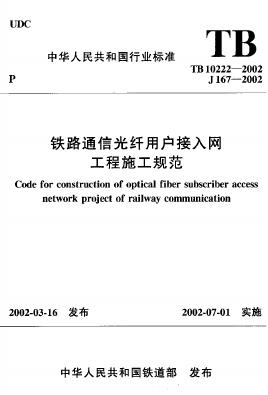 TB 10222-2002 铁路通信光纤用户接入网工程施工规范