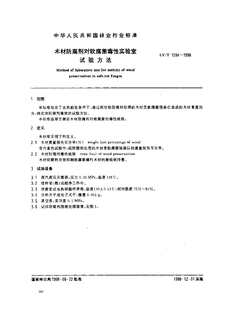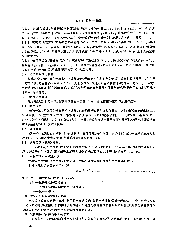 LY/T 1284-1998 木材防腐剂对软腐菌毒性实验室试验方法