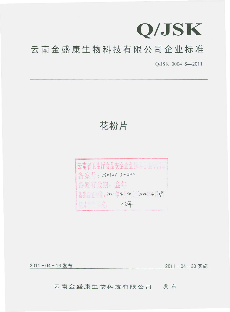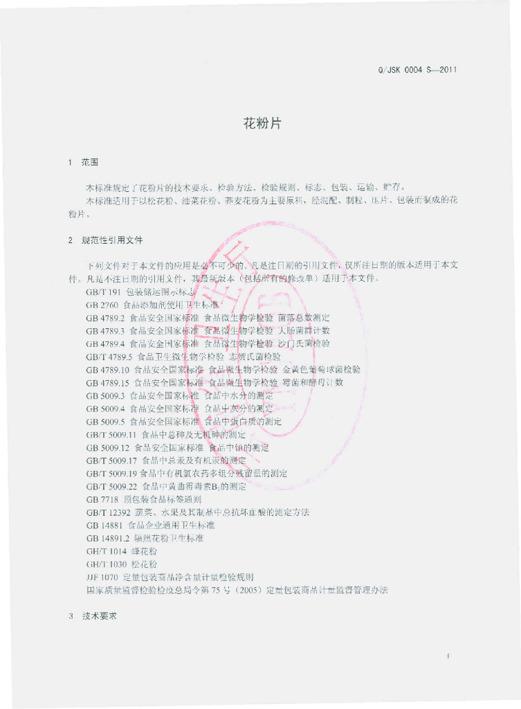 Q/JSK 0004S-2011 花粉片