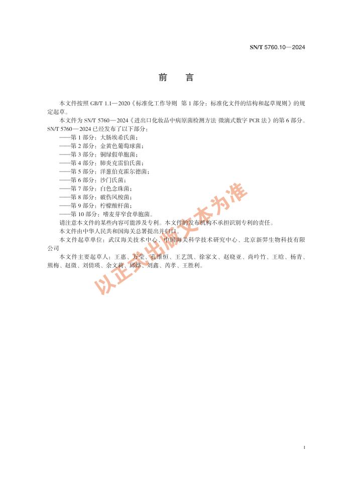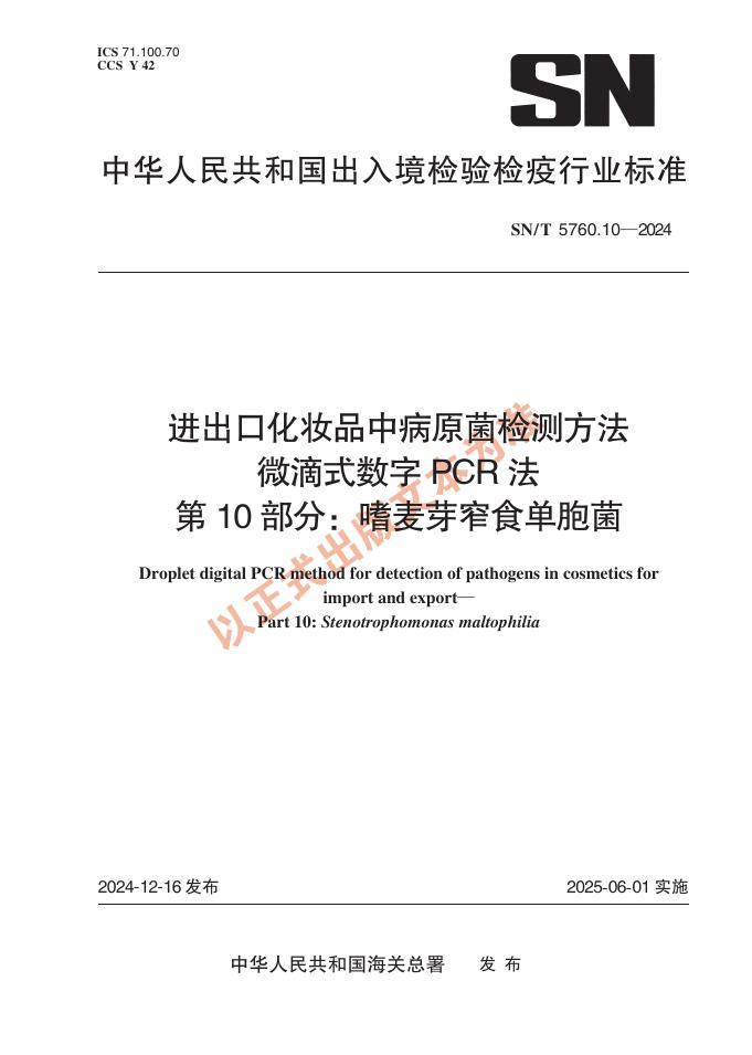 SN/T 5760.10-2024 出口化妆品中病原菌检测方法 微滴式数字PCR法 第10部分:嗜麦芽窄食单胞菌