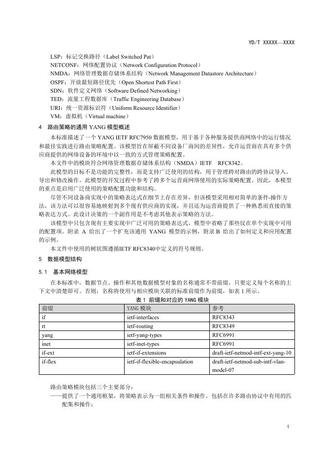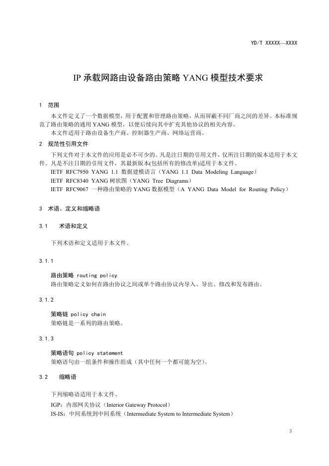 YD/T 4808-2024 IP承载网路由设备路由策略YANG模型技术要求