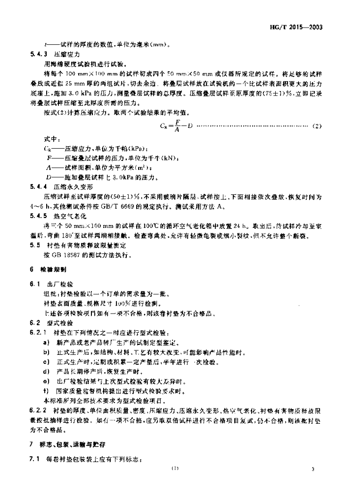 HG/T 2015-2003 橡胶海绵地毯衬垫