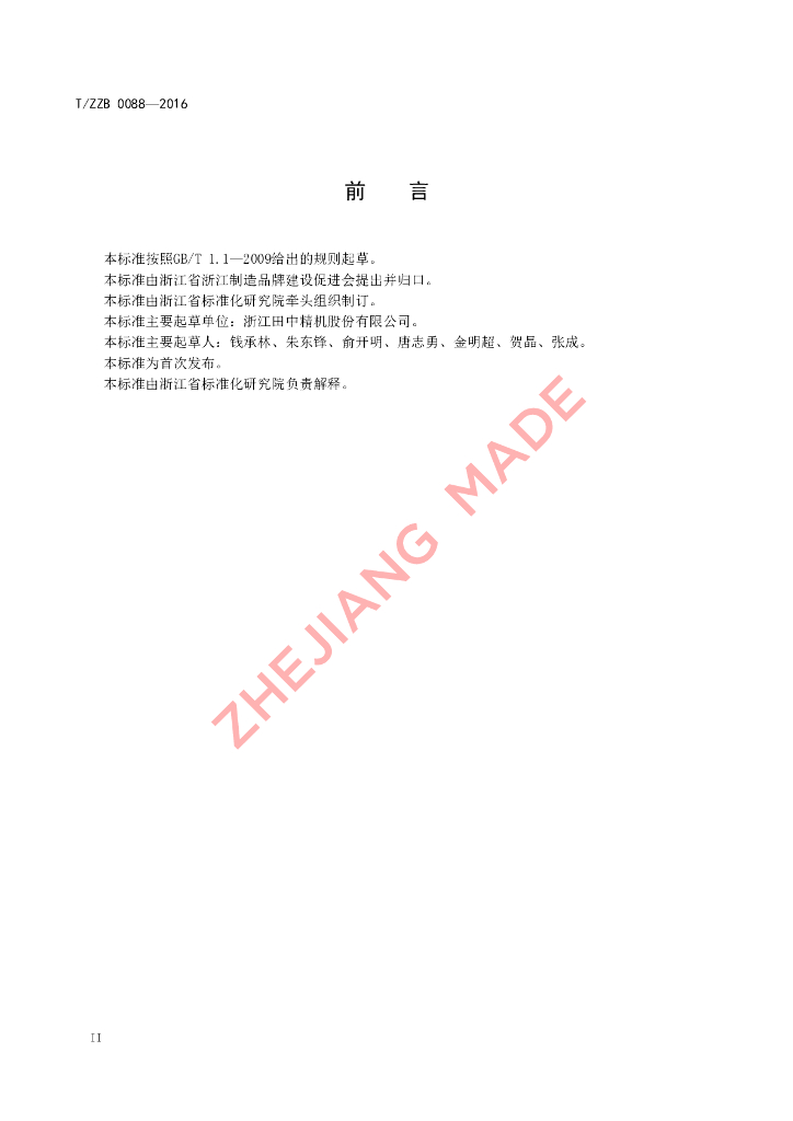 本标准由浙江省标准化研究院牵头组织制订。、本标准主要起草单位:浙江田中精机股份有限公司。