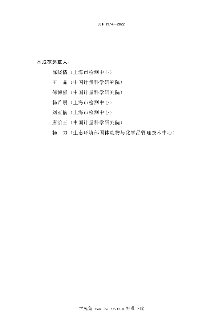 陈晓倩(上海市检测中心)、王晶(中国计量科学研究院)、傅博强(中国计量科学研究院)、杨希晨(上海市检测中心)、刘亚楠(上海市检测中心)、唐治玉(中国计量科学研究院)、杨力(生态环境部固体废物与化学品管理技术中心)