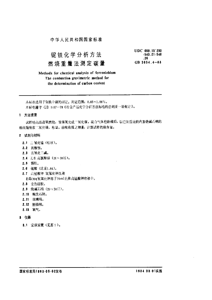 GB/T 3654.4-1983 铌铁化学分析方法 燃烧重量法测定碳量