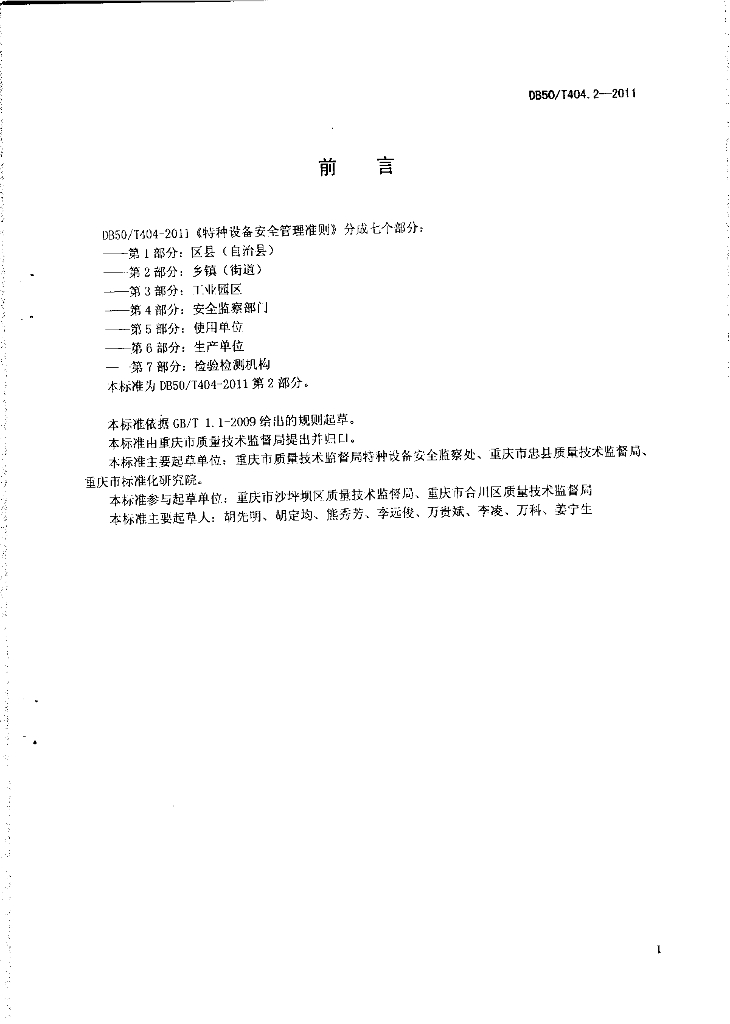 重庆市质量技术监督局特种设备安全监察处;重庆市忠县质量技术监督局;重庆市标准化研究院;重庆市沙坪坝区质量技术监督局;重庆市合川区质量技术监督局