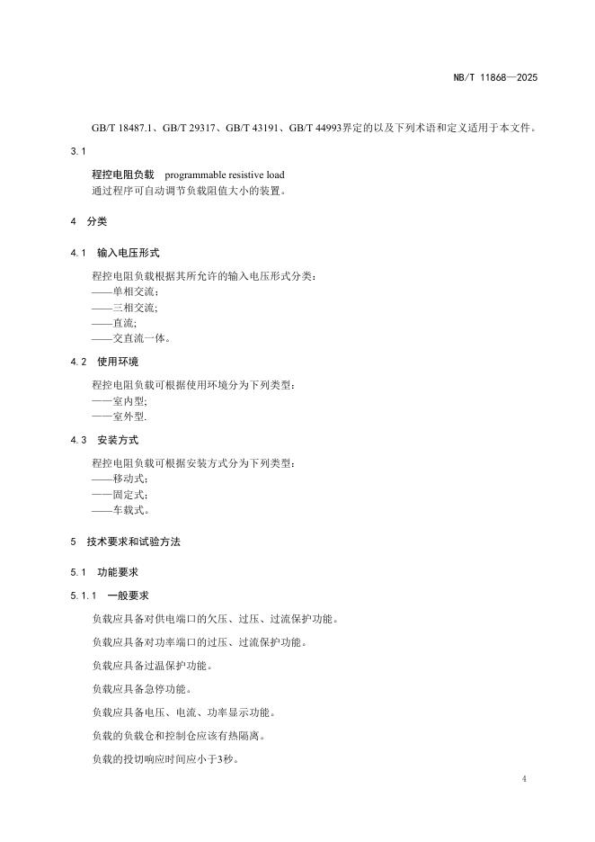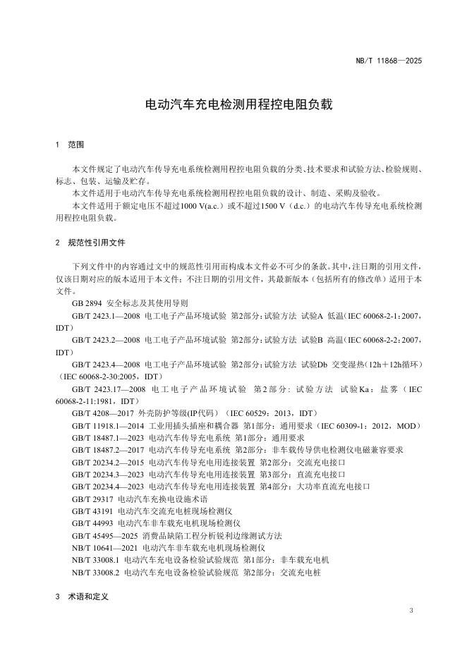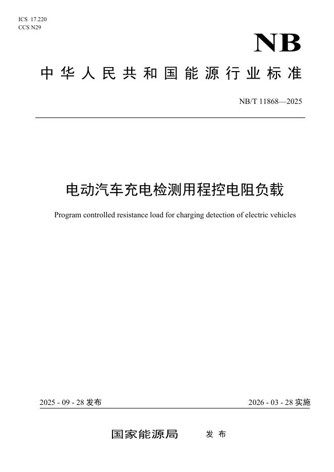 NB/T 11868-2025 电动汽车充电检测用程控电阻负载