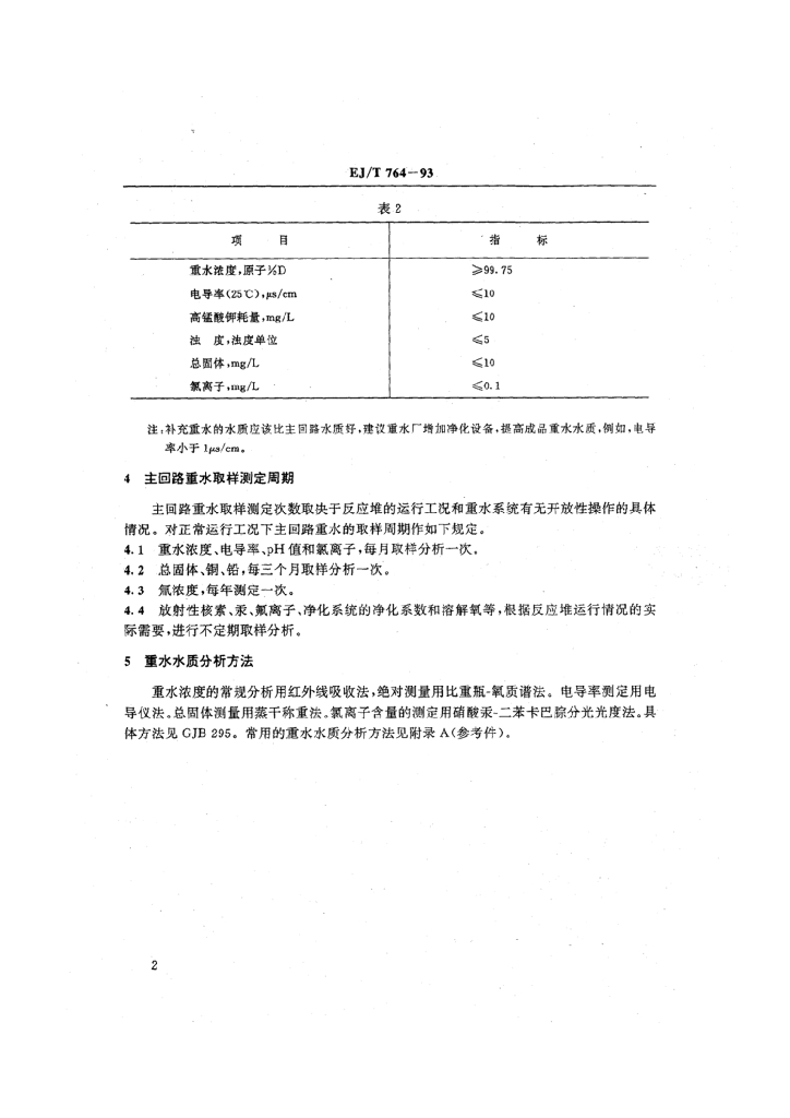 EJ/T 764-1993 重水研究堆水质技术条件