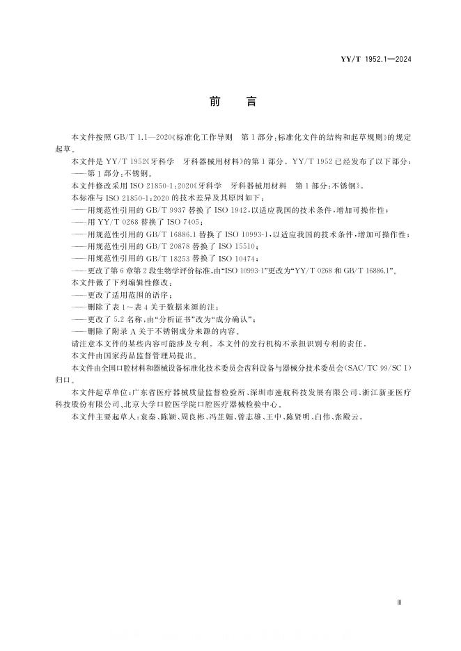YY/T 1952.1-2024 牙科学 牙科器械用材料 第1部分:不锈钢