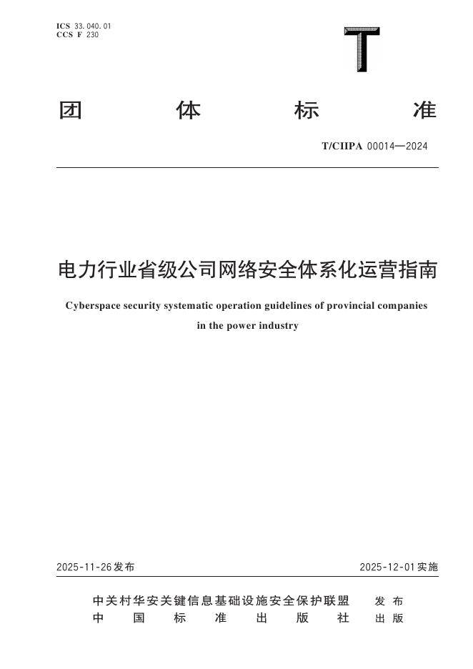 T/CIIPA 00014-2024 电力行业省级公司网络安全体系化运营指南