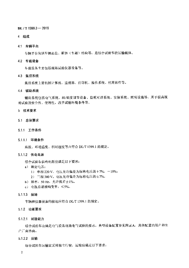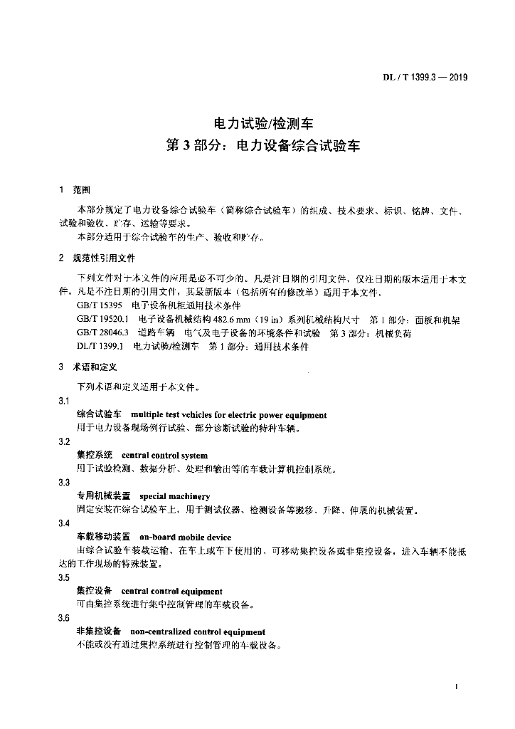 DL/T 1399.3-2019 电力试验_检测车 第3部分:电力设备综合试验车