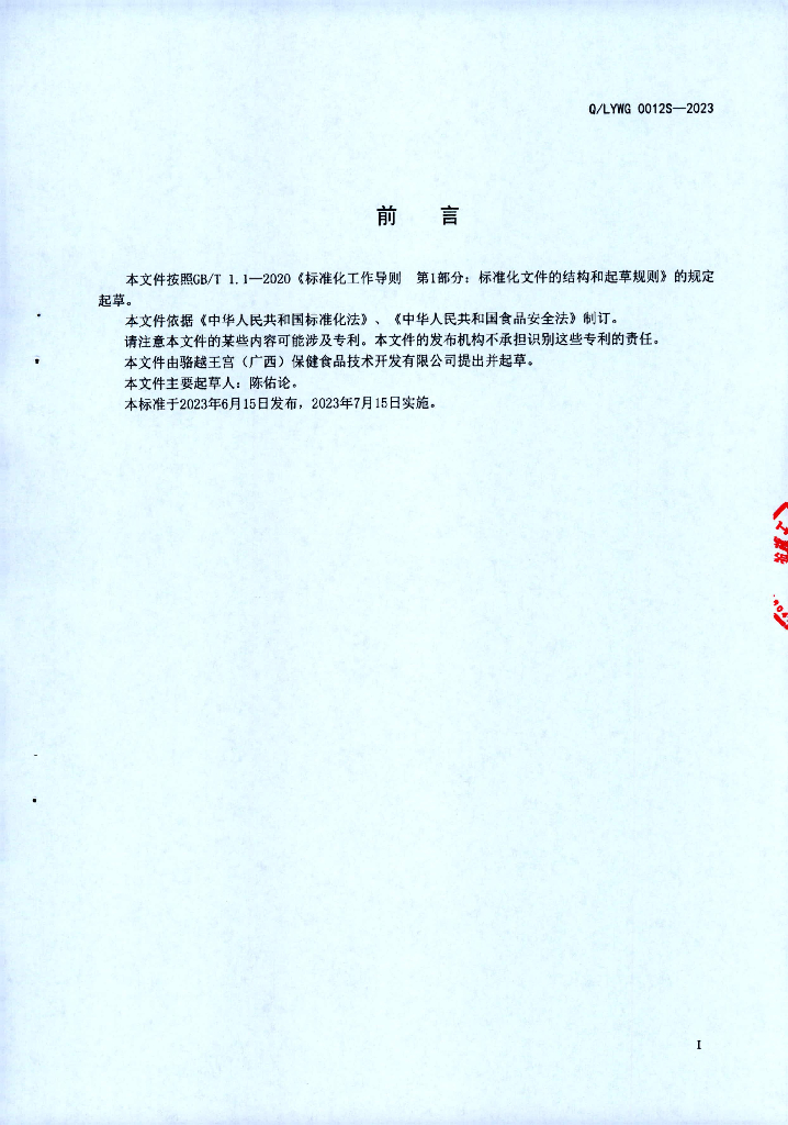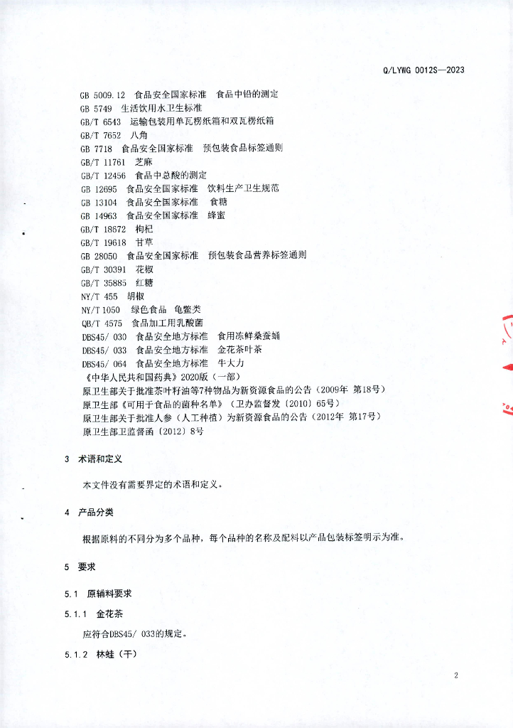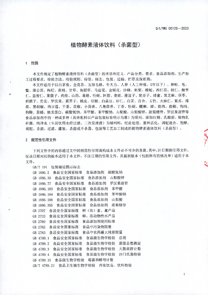 Q/LYWG 0012S-2023 植物酵素液体饮料(杀菌型)