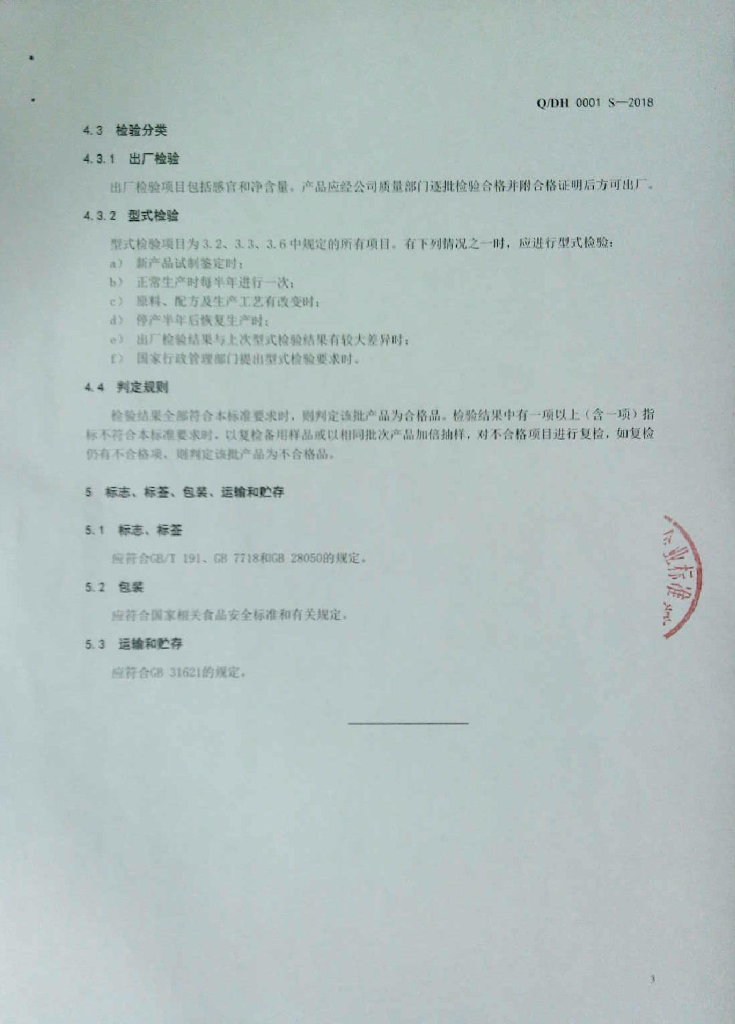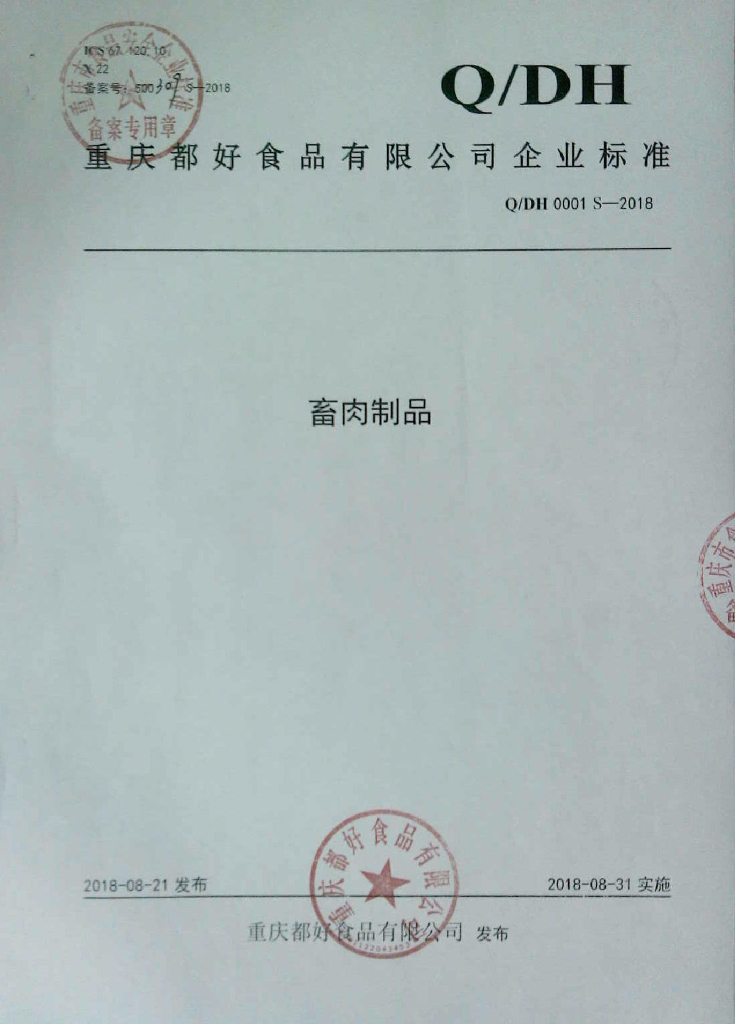 Q/DH 0001S-2018 畜肉制品