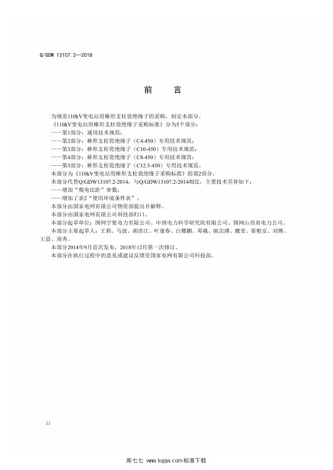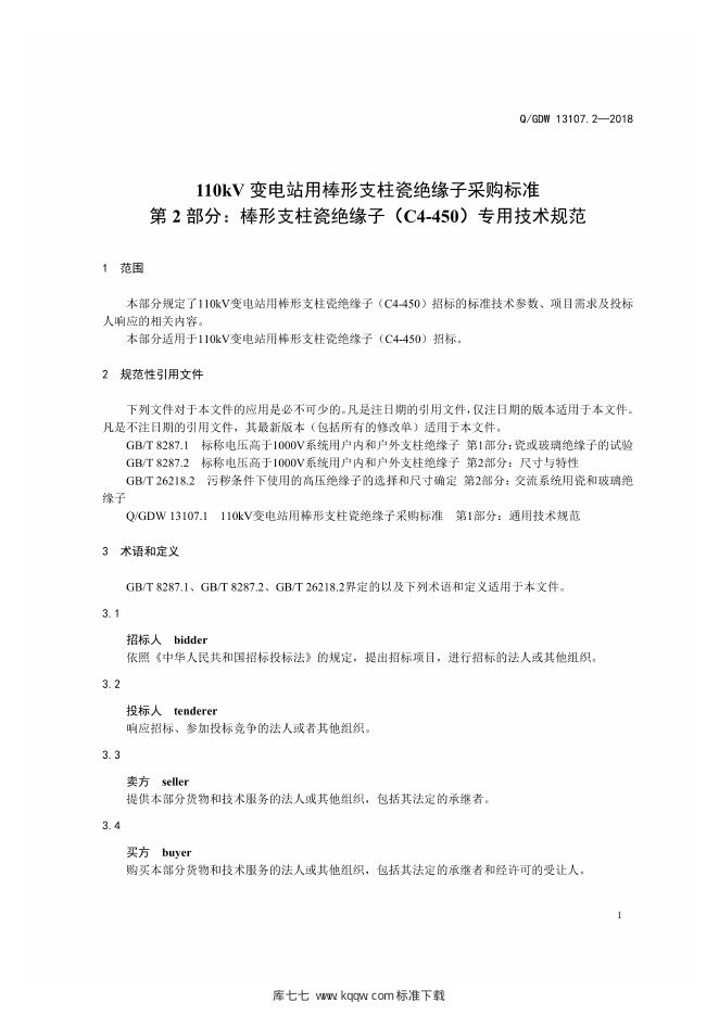 Q/GDW 13107.2-2018 110kV变电站用棒形支柱瓷绝缘子采购标准 第2部分:棒形支柱瓷绝缘子 C4-450 专用技术规范