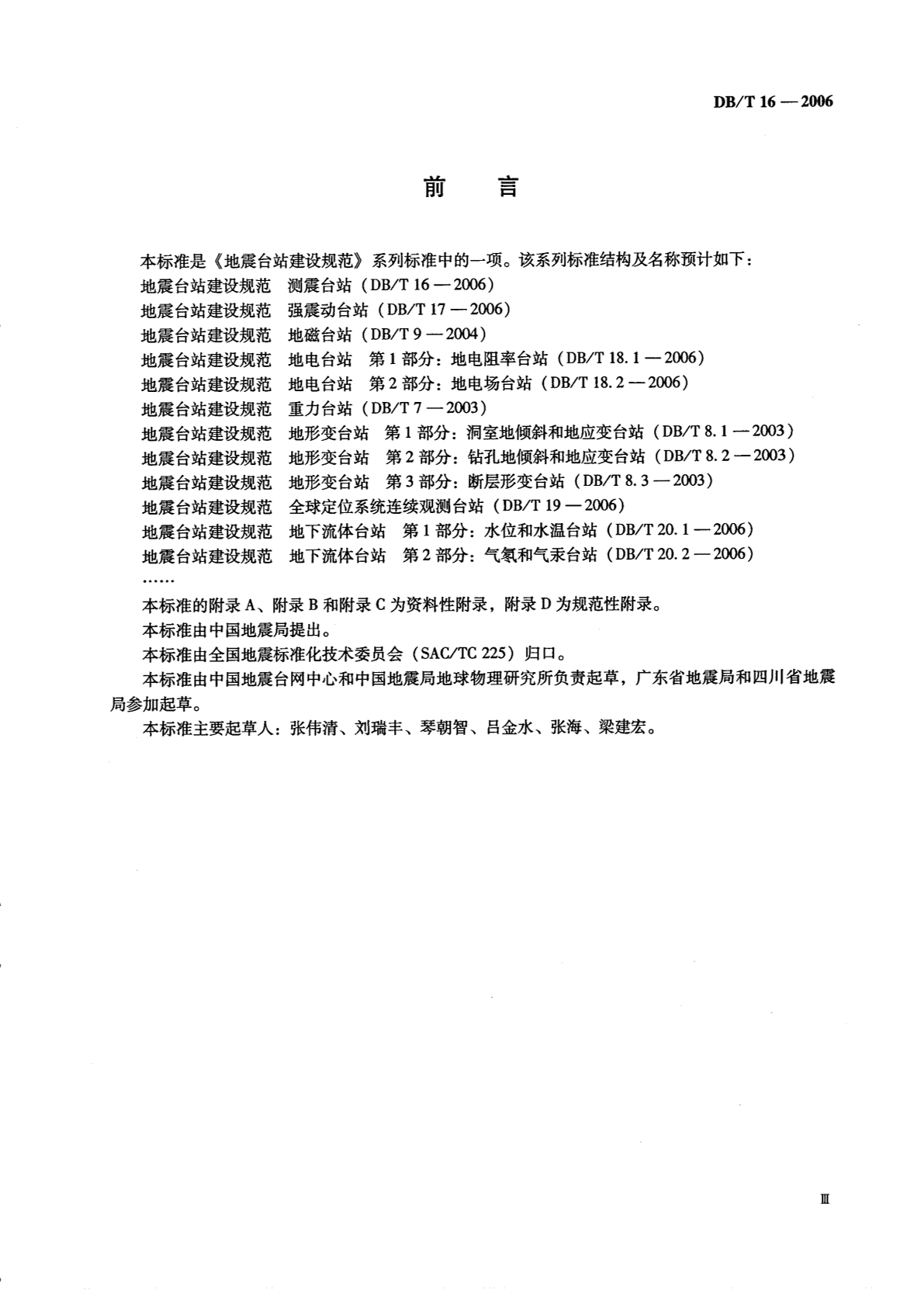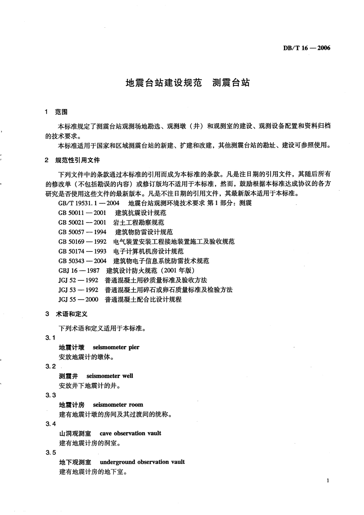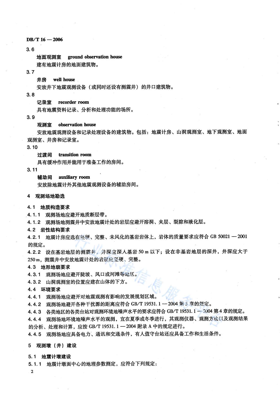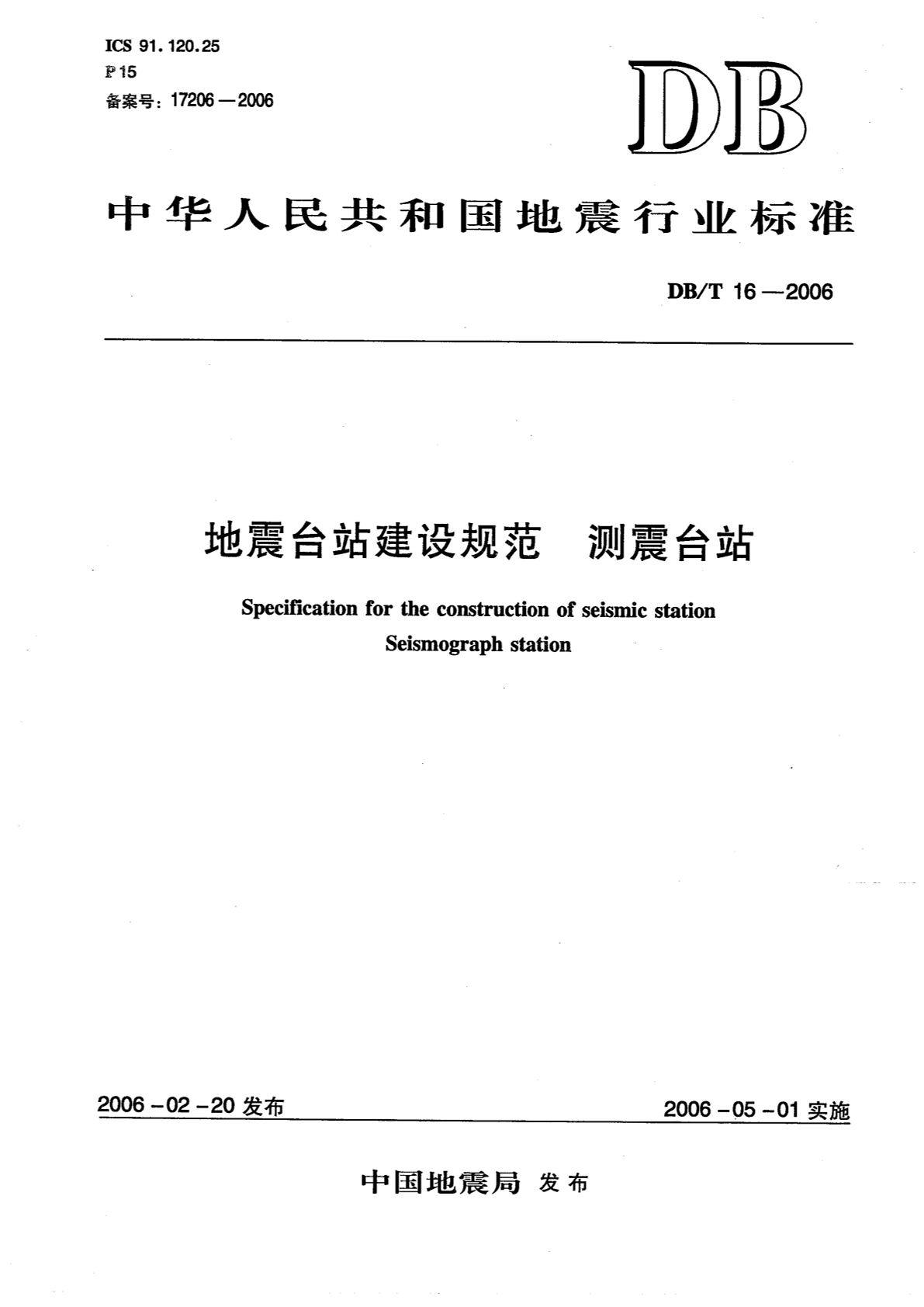 DB/T 16-2006 地震台站建设规范 测震台站