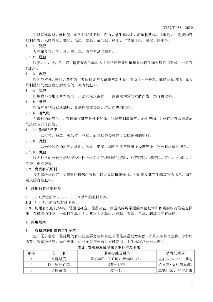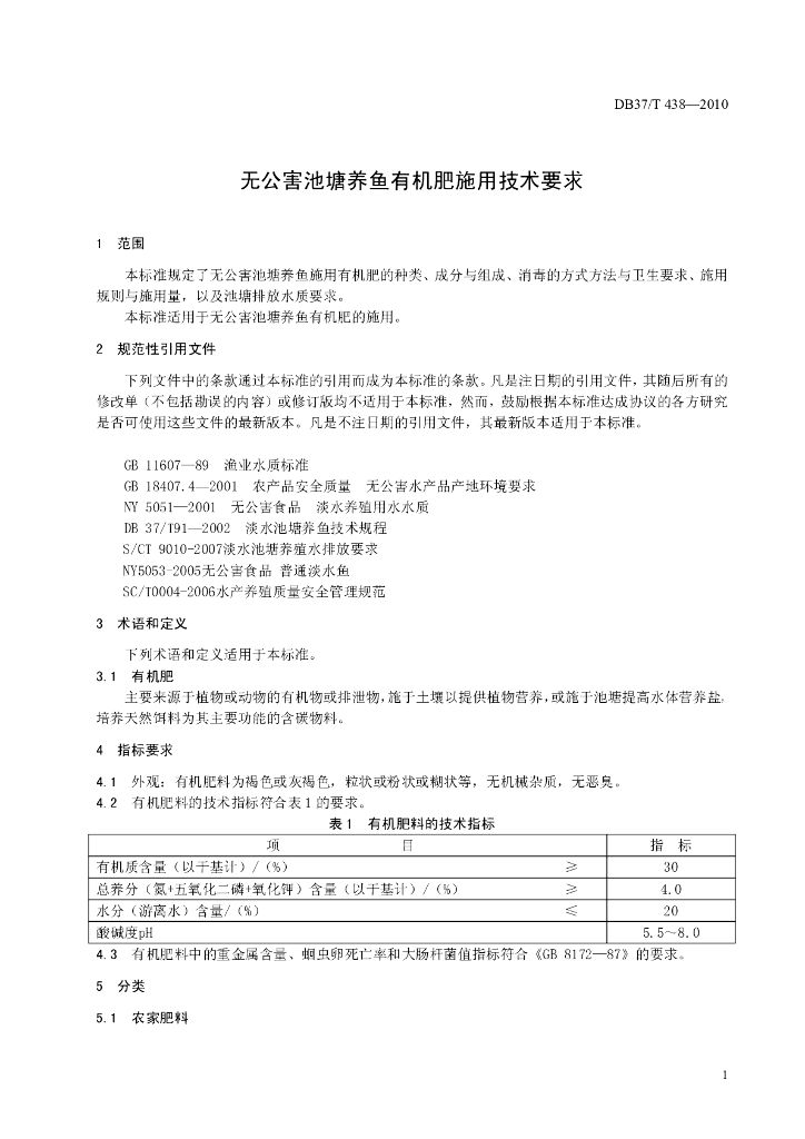 DB37/T 438-2010 无公害池塘养鱼有机肥施用技术要求