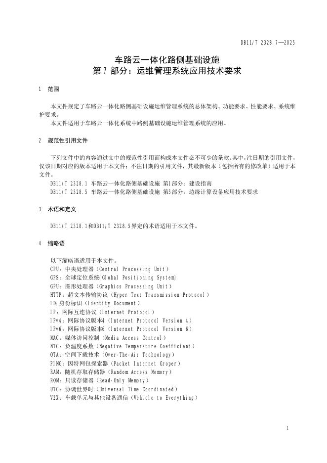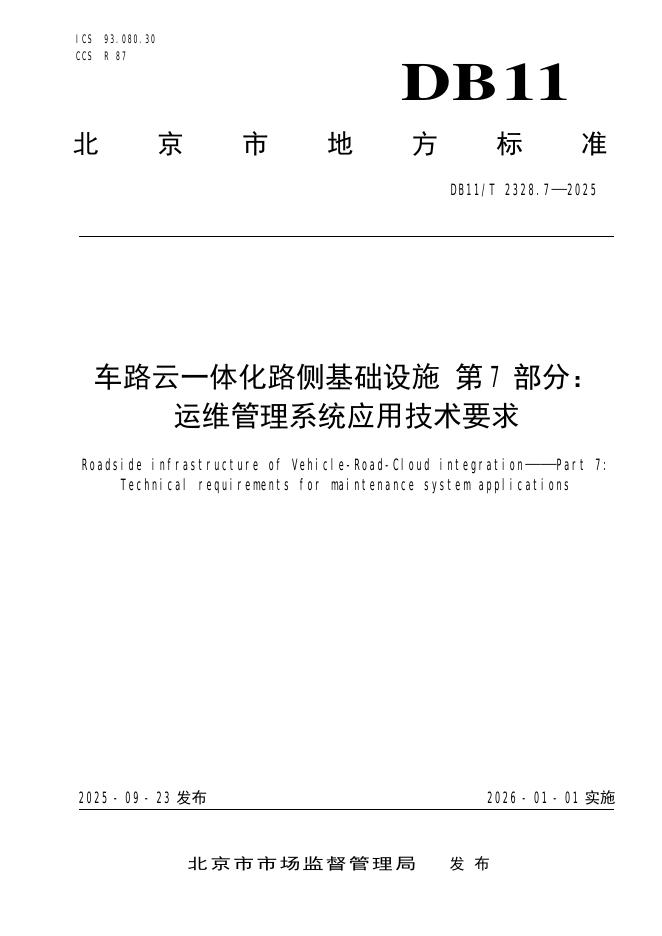 DB11/T 2328.7-2025 车路云一体化路侧基础设施 第7部分:运维管理系统应用技术要求