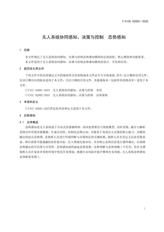 T/CICC 02003-2025 无人系统协同感知、决策与控制 态势感知