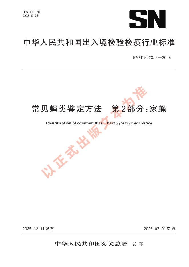 SN/T 5923.2-2025 常见蝇类鉴定方法 第2部分:家蝇