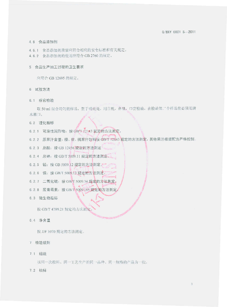 Q/BXY 0001S-2011 果汁饮料