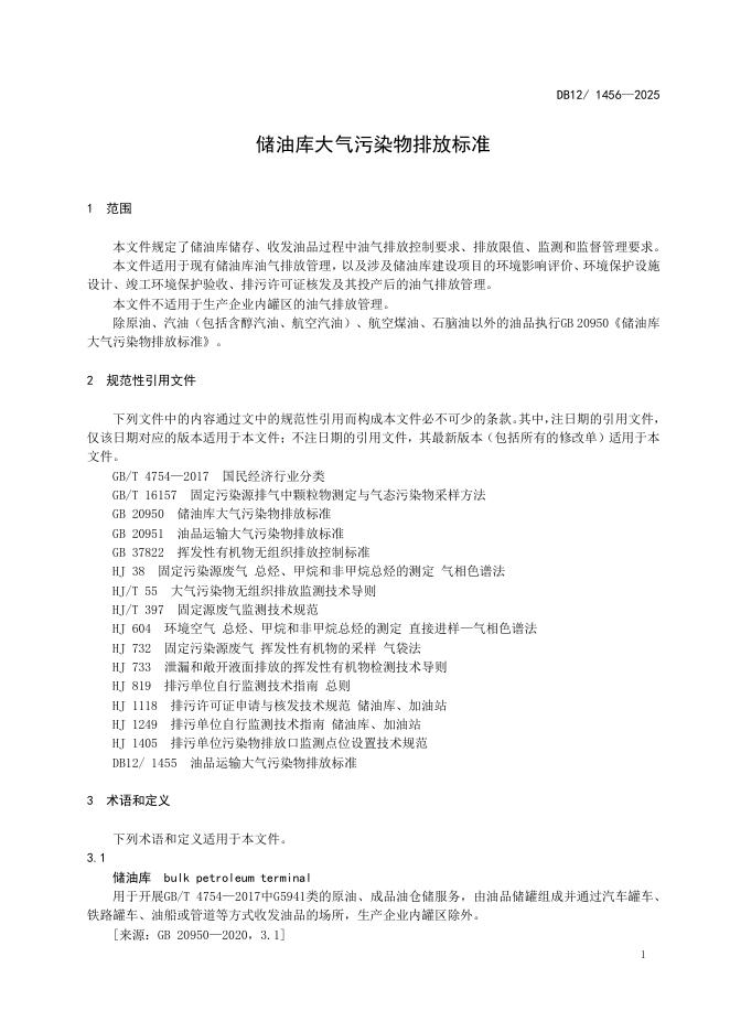 DB12/ 1456-2025 储油库大气污染物排放标准