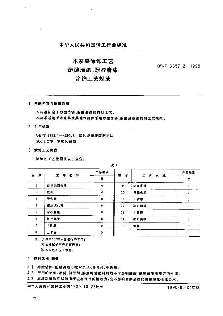 QB/T 3657.2-1999 木家具涂饰工艺醇酸清漆、酚醛清漆涂饰工艺规范
