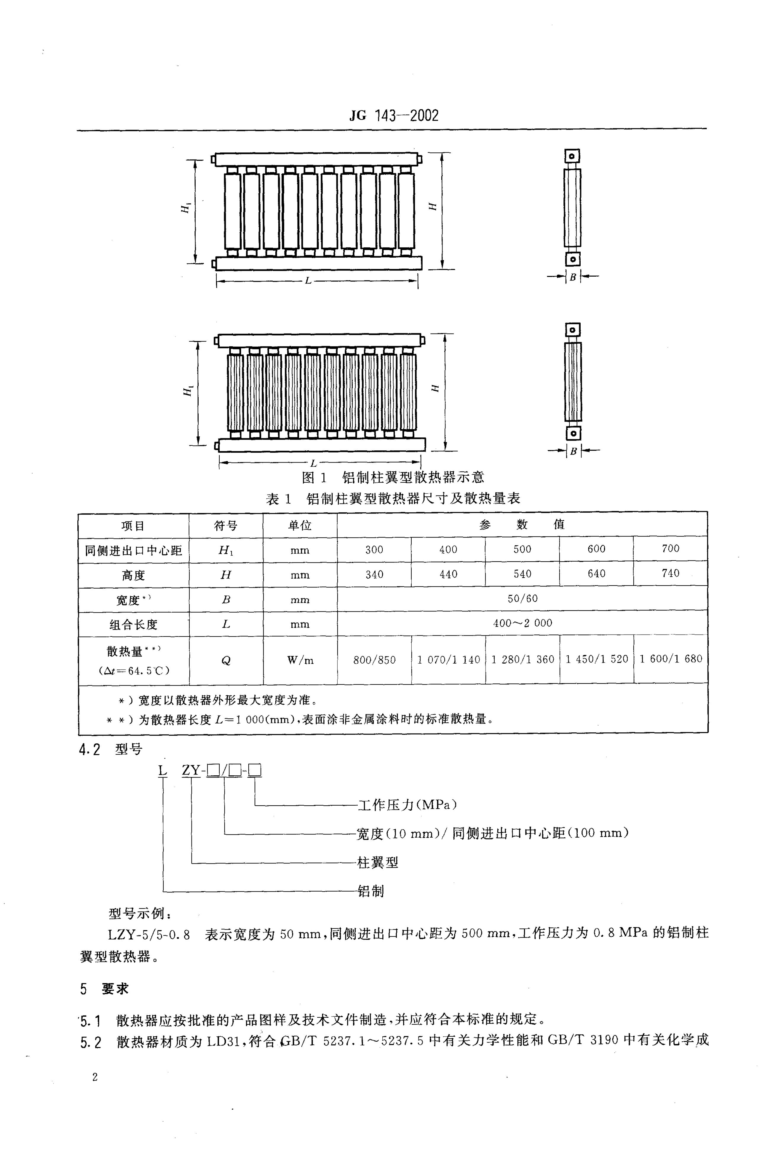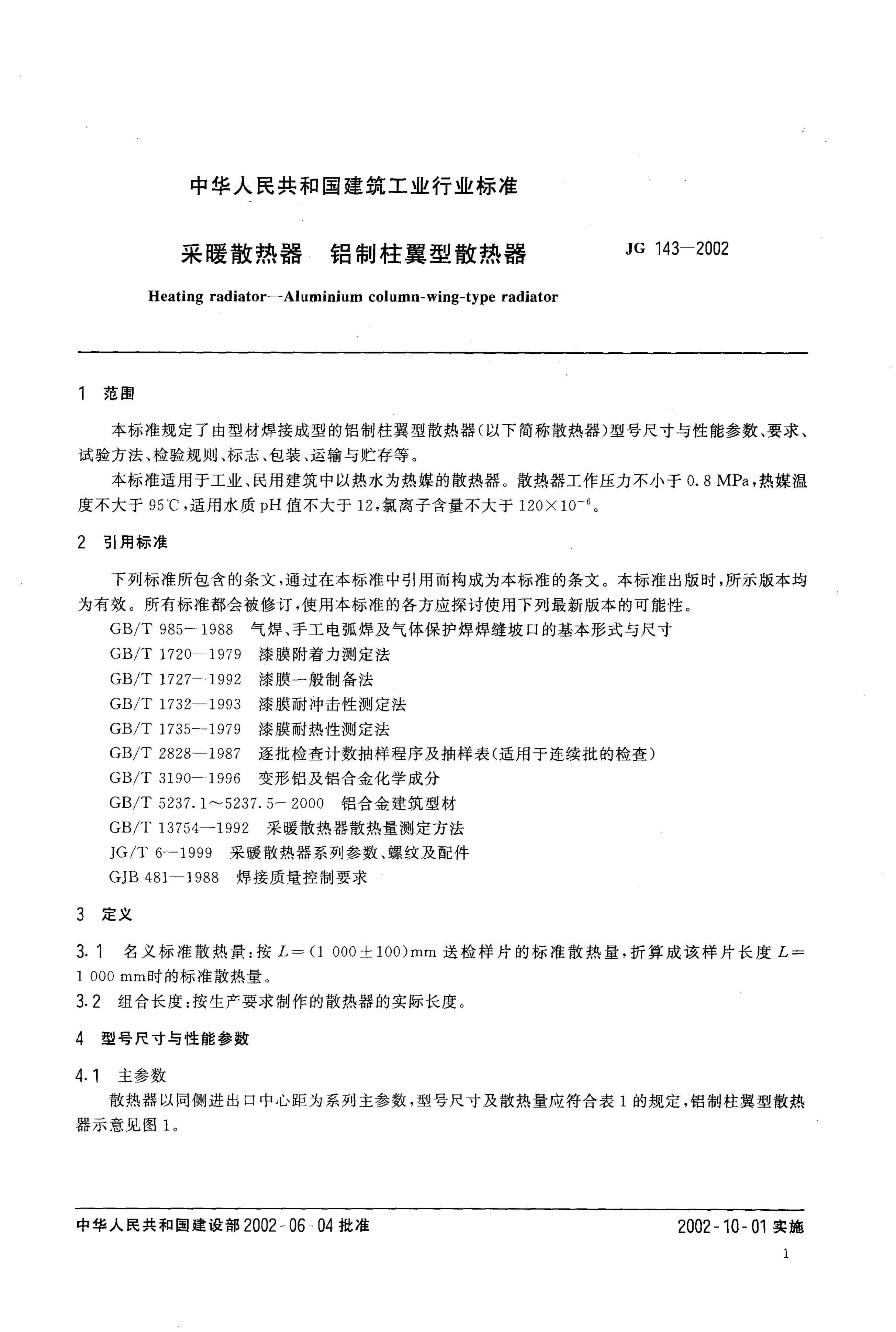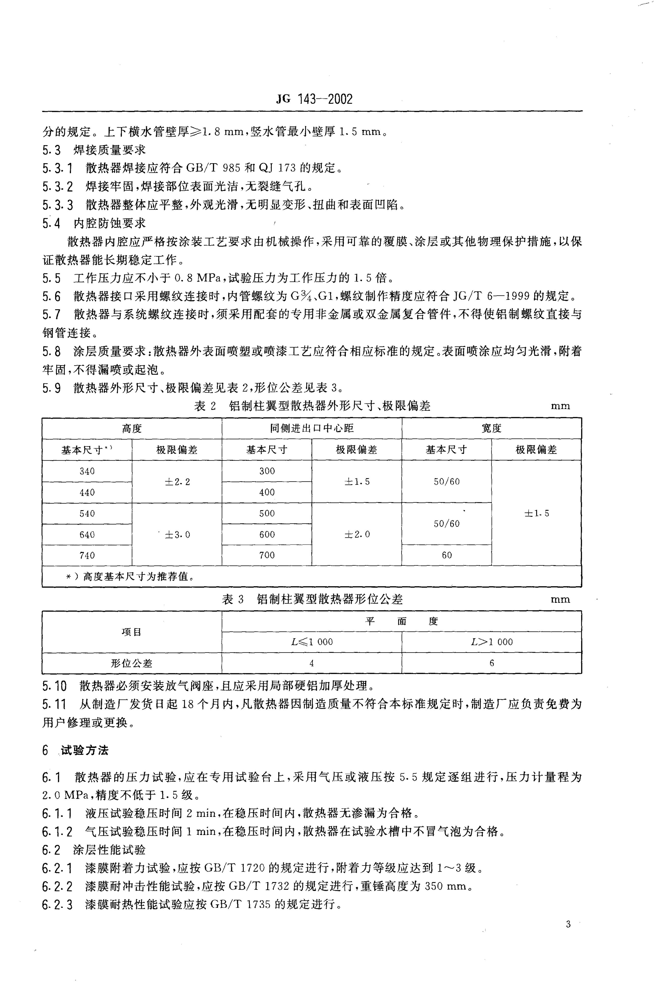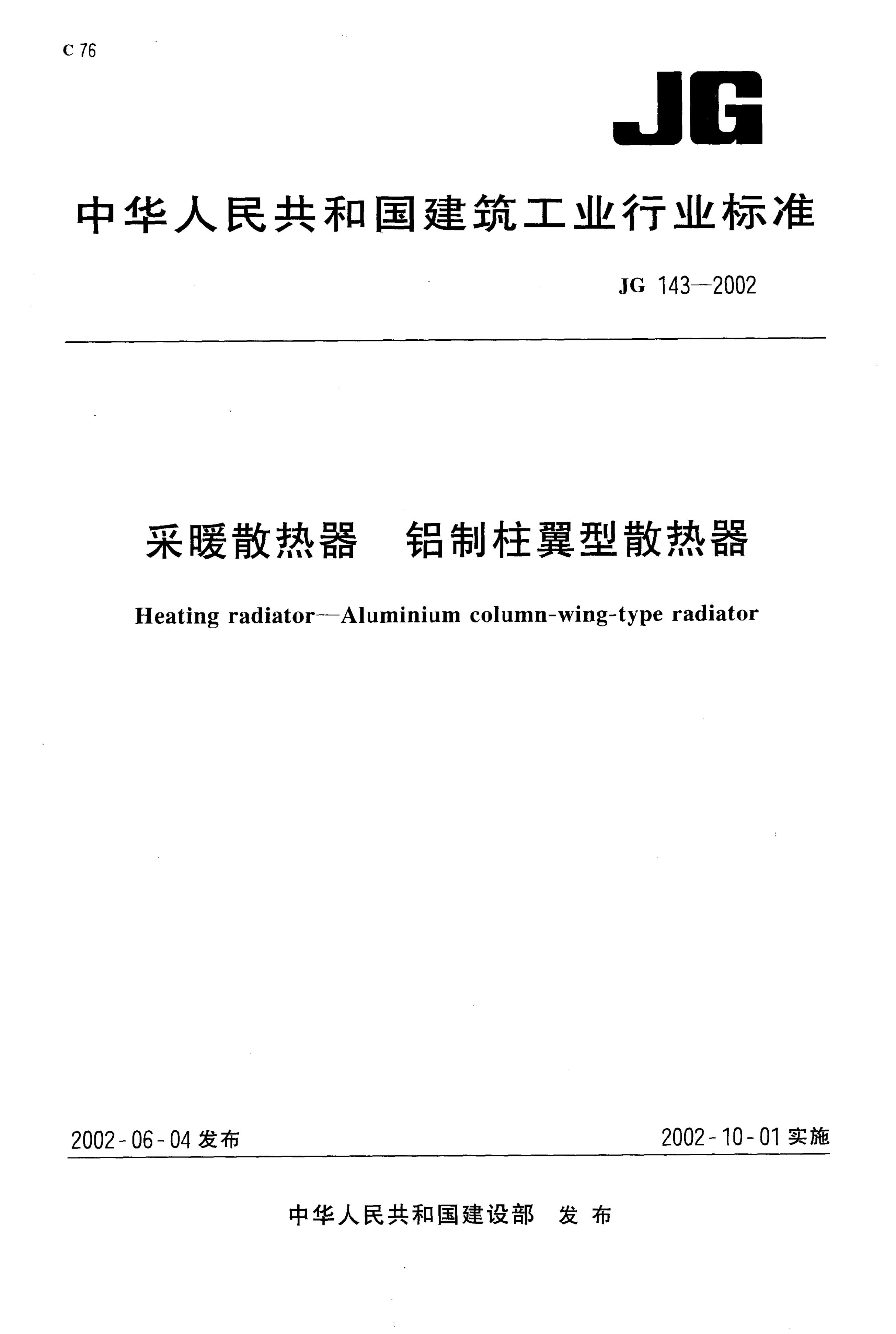 JG/T 143-2002 采暖散热器 铝制柱翼型散热器