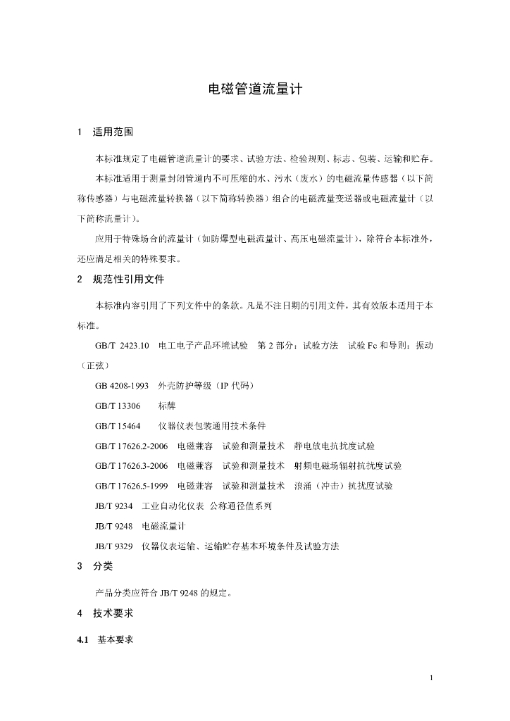 HJ/T 367-2007 环境保护产品技术要求 电磁管道流量计