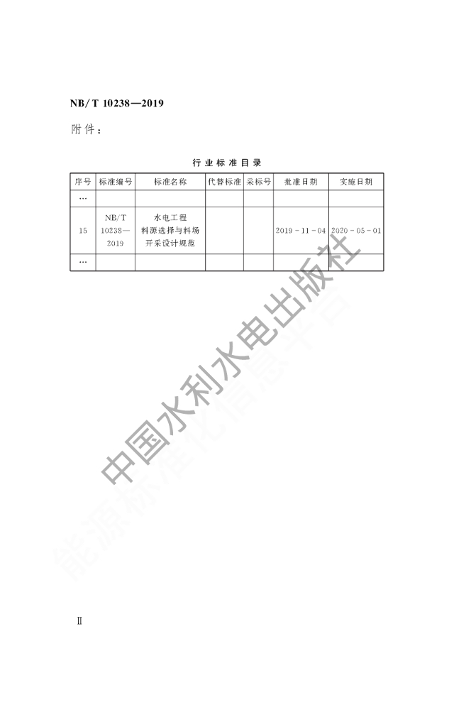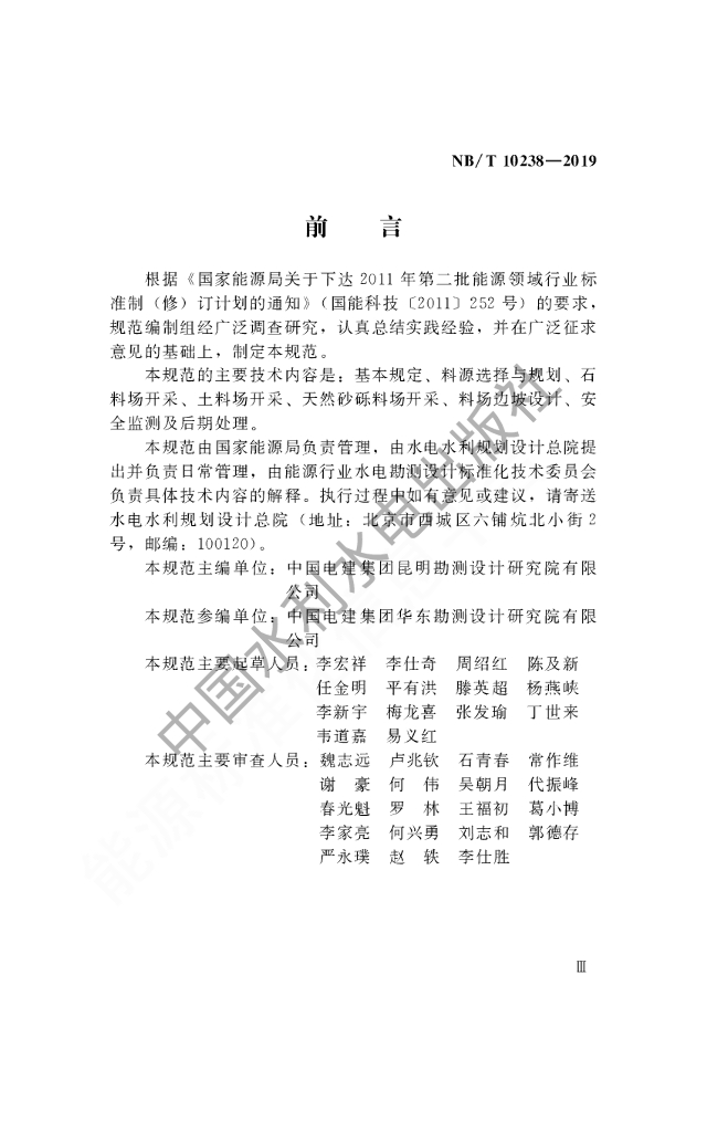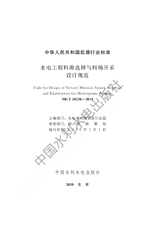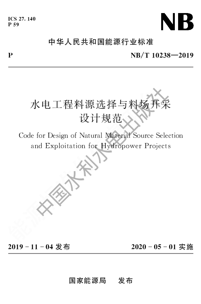 NB/T 10238-2019 水电工程料源选择与料场开采设计规范