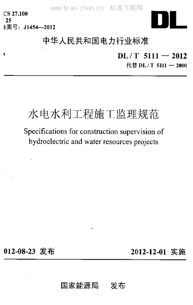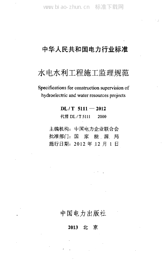 DL/T 5111-2012 水电水利工程施工监理规范