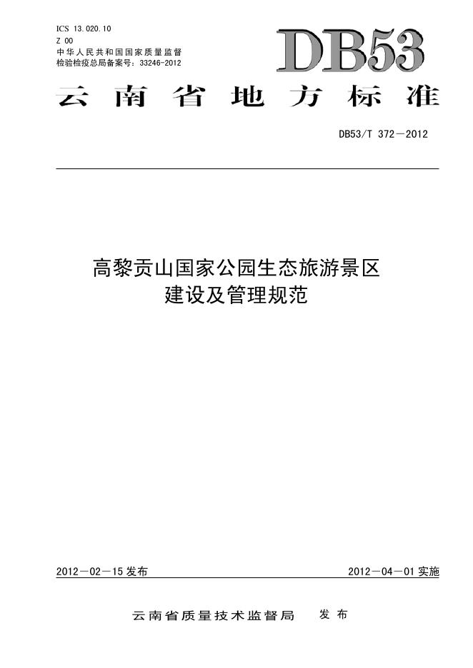 高黎贡山国家公园管理局、保山市质量技术监督局、保山市旅游局