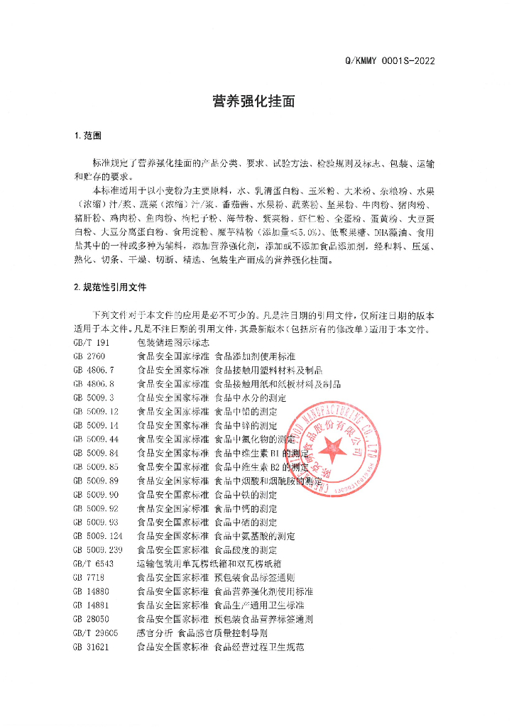 Q/KMMY 0001S-2022 营养强化挂面