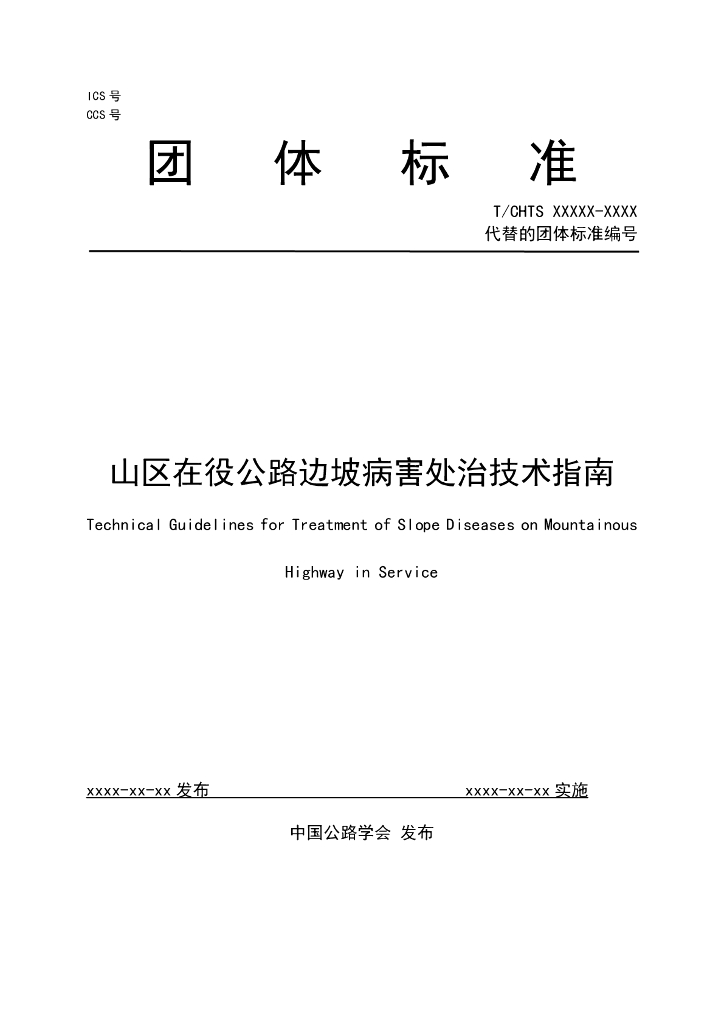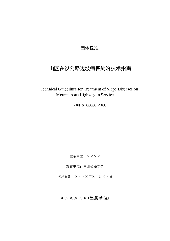 T/CHTS XXXXX-XXXX 山区在役公路边坡病害处治技术指南(征求意见稿)