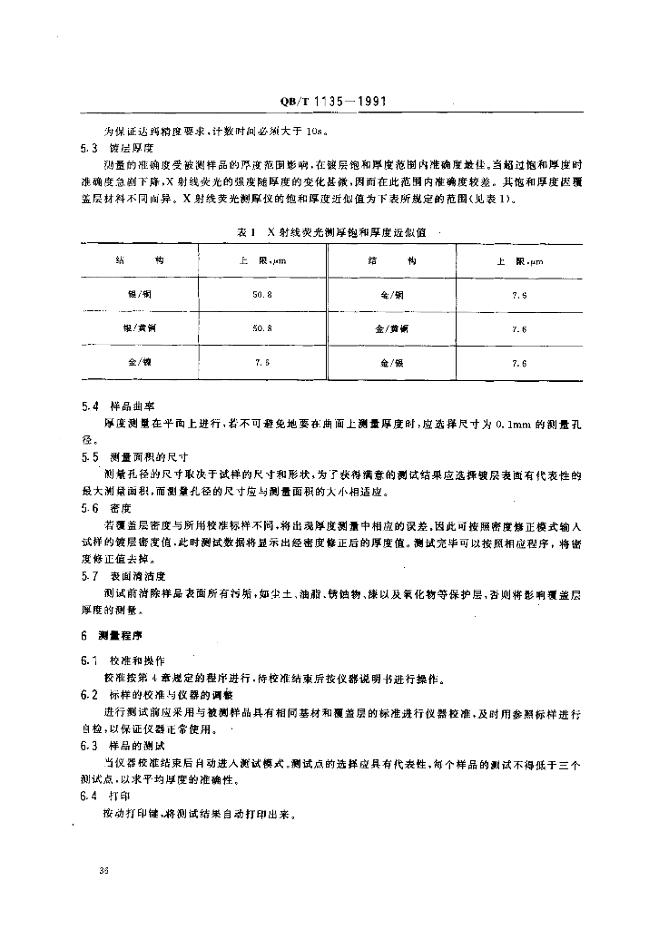 QB/T 1135-1991 首饰金银覆盖层厚度的测定方法X射线荧光光谱法