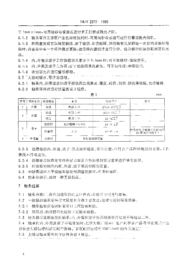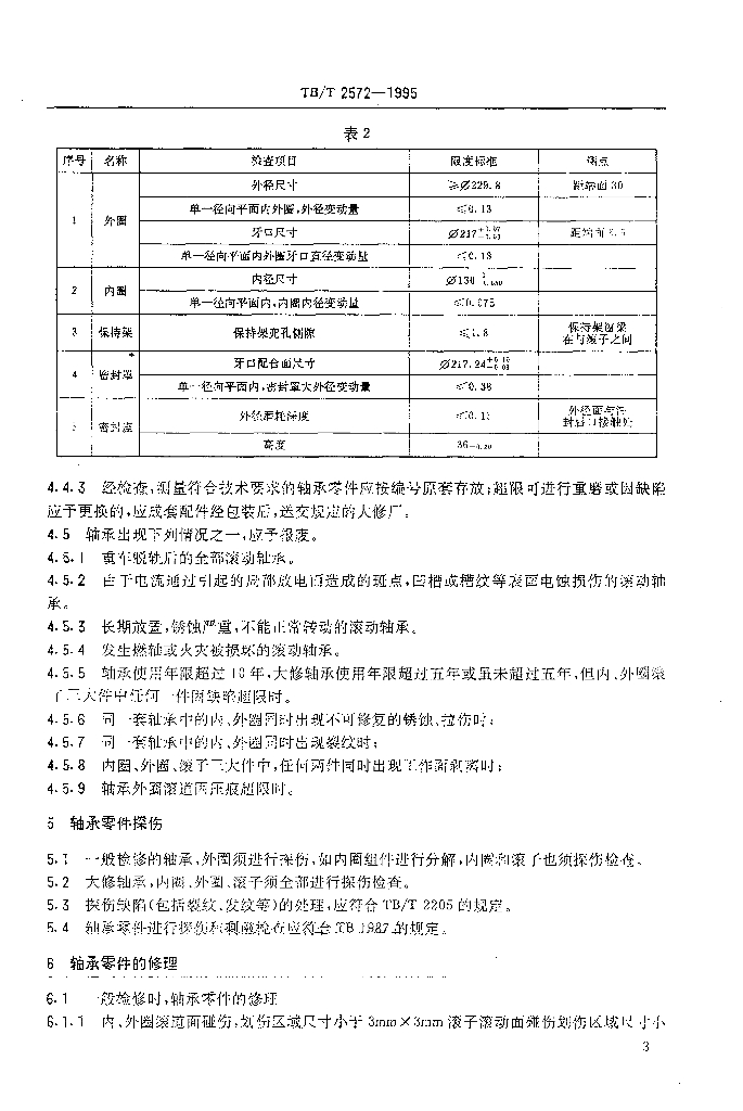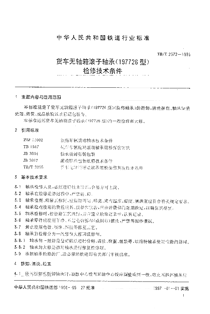 TB/T 2572-1995 货车无轴箱滚子轴承(197726型)检修技术条件