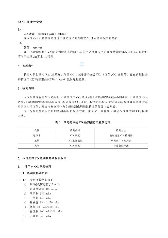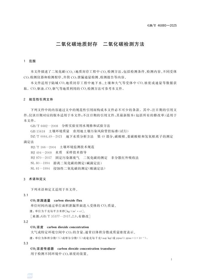 GB/T 46880-2025 二氧化碳地质封存 二氧化碳检测方法