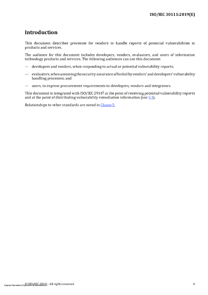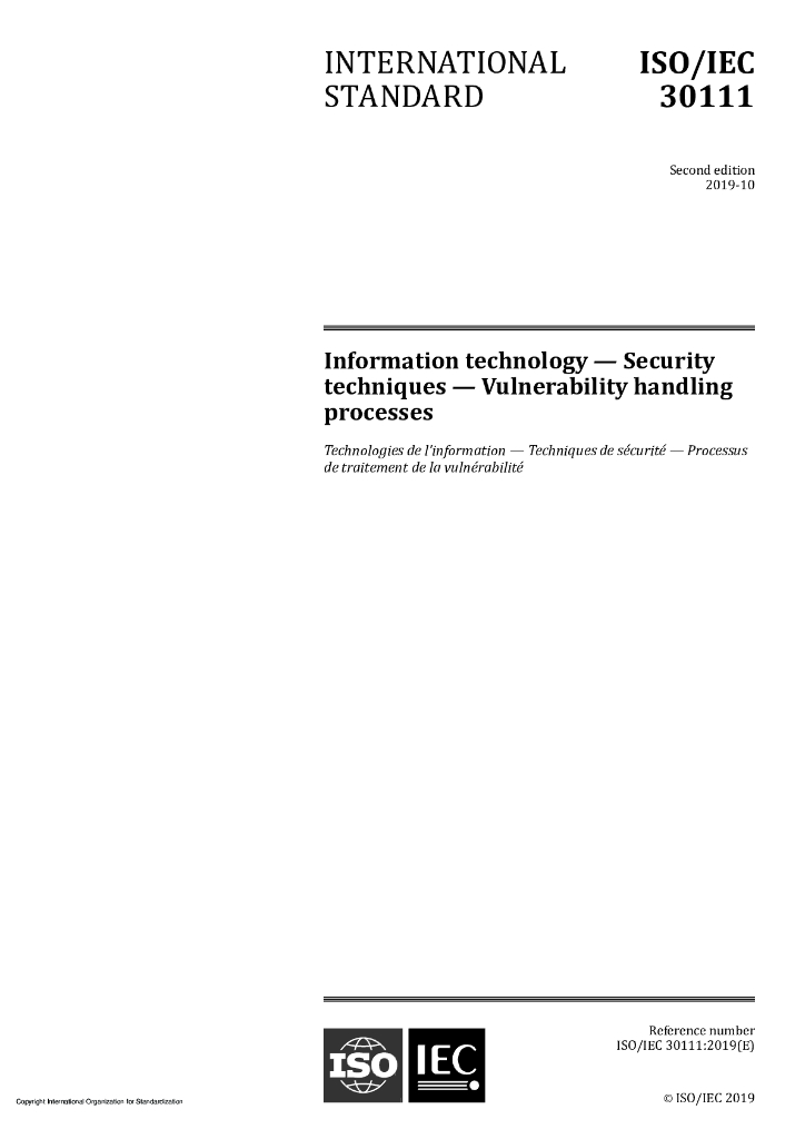 ISO/IEC 30111-2019 信息技术 安全技术 漏洞处理过程