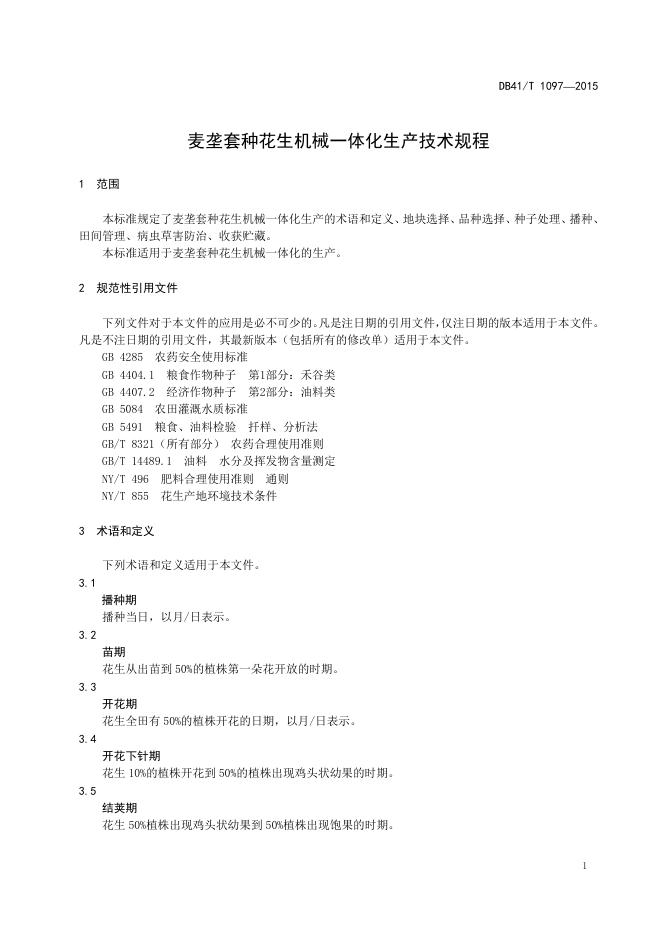 DB41/T 1097-2015 麦垄套种花生机械一体化生产技术规程