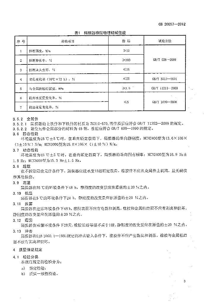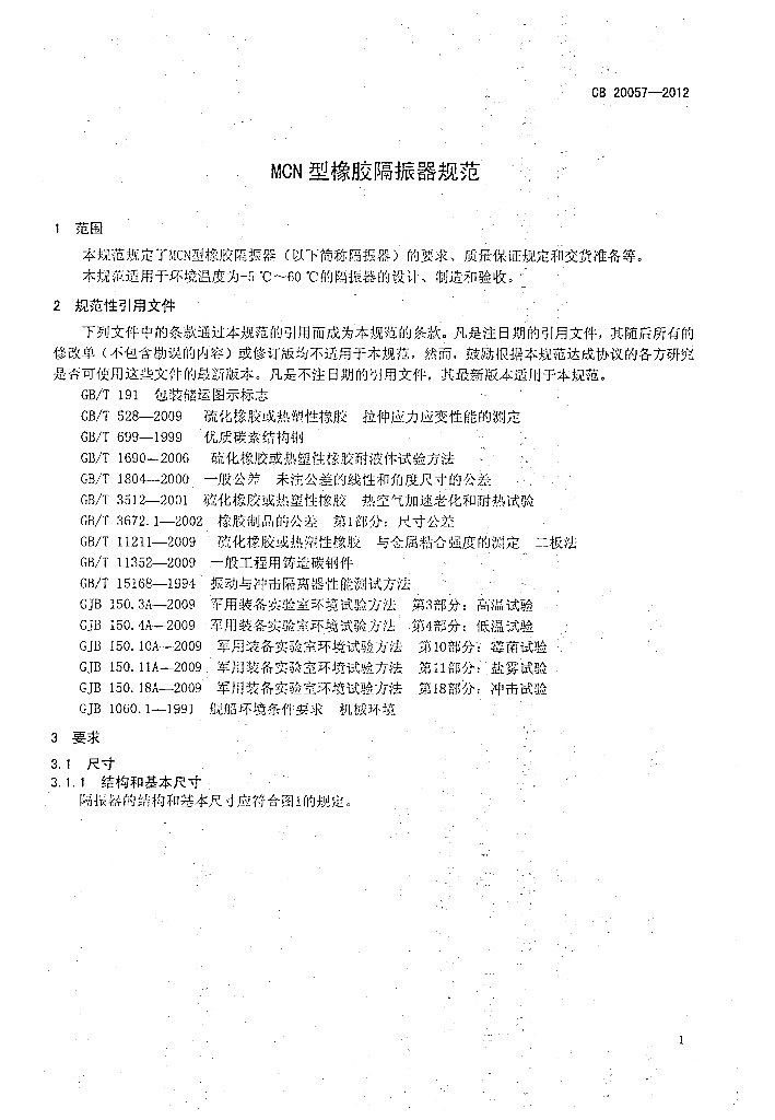 CB 20057-2012 MCN型橡胶隔振器规范